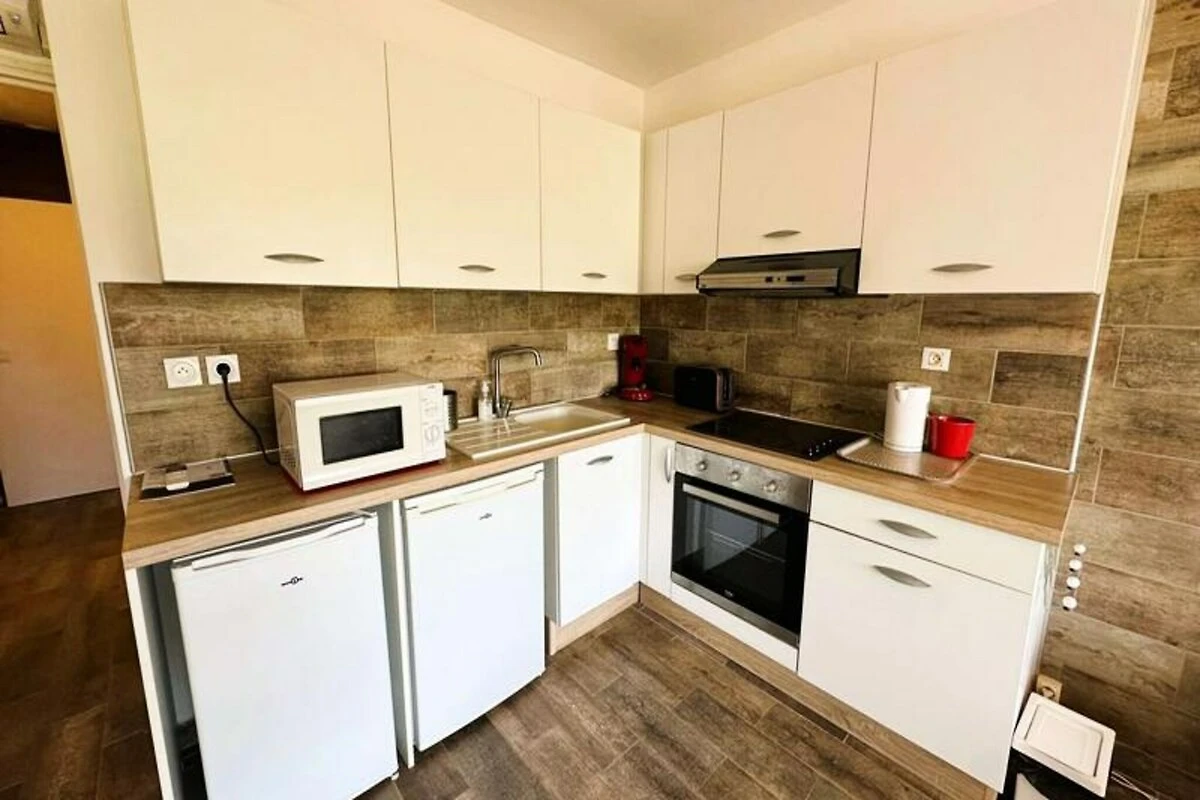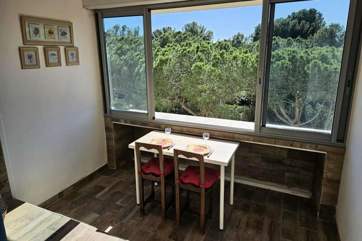 Mit Blick auf das üppige Grün des Fernand-Braudel-Parks und das glitzernde Mittelmeer bietet dieses charmante Studio-Apartment eine ruhige Oase im Herzen des Badeortes Sablettes. Perfekt gelegen im zweiten Stock eines sicheren Gebäudes mit Aufzug, bietet es einen friedlichen Rückzugsort nur wenige Schritte von Sandstränden, lebhaften Geschäften und einladenden Restaurants entfernt. Der nahegelegene Fährhafen verbindet Sie bequem mit Toulon und macht das Apartment zu einem idealen Ausgangspunkt, um die Region zu erkunden. Das kürzlich renovierte und in tadellosem Zustand befindliche, 30 m² große, klimatisierte Studio ist durchdacht gestaltet und bietet Platz für zwei Gäste. Der Wohnbereich verfügt über ein brandneues, hochwertiges Schlafsofa mit dicker Matratze für erholsame Nächte. Eine gut ausgestattete Küchenzeile lädt zum einfachen Zubereiten von Mahlzeiten ein und bietet moderne Geräte wie Kochfeld, Backofen, Mikrowelle und Senseo-Kaffeemaschine. Der helle Raum wird durch ein großes Erkerfenster mit automatischem Rollo ergänzt, das den Raum mit natürlichem Licht durchflutet und gleichzeitig Privatsphäre gewährleistet. Zur weiteren Ausstattung gehören Glasfaser-Internet, ein Flachbildfernseher und viel Stauraum sowie eine Waschmaschine und ein beheizter Handtuchhalter für zusätzlichen Komfort.