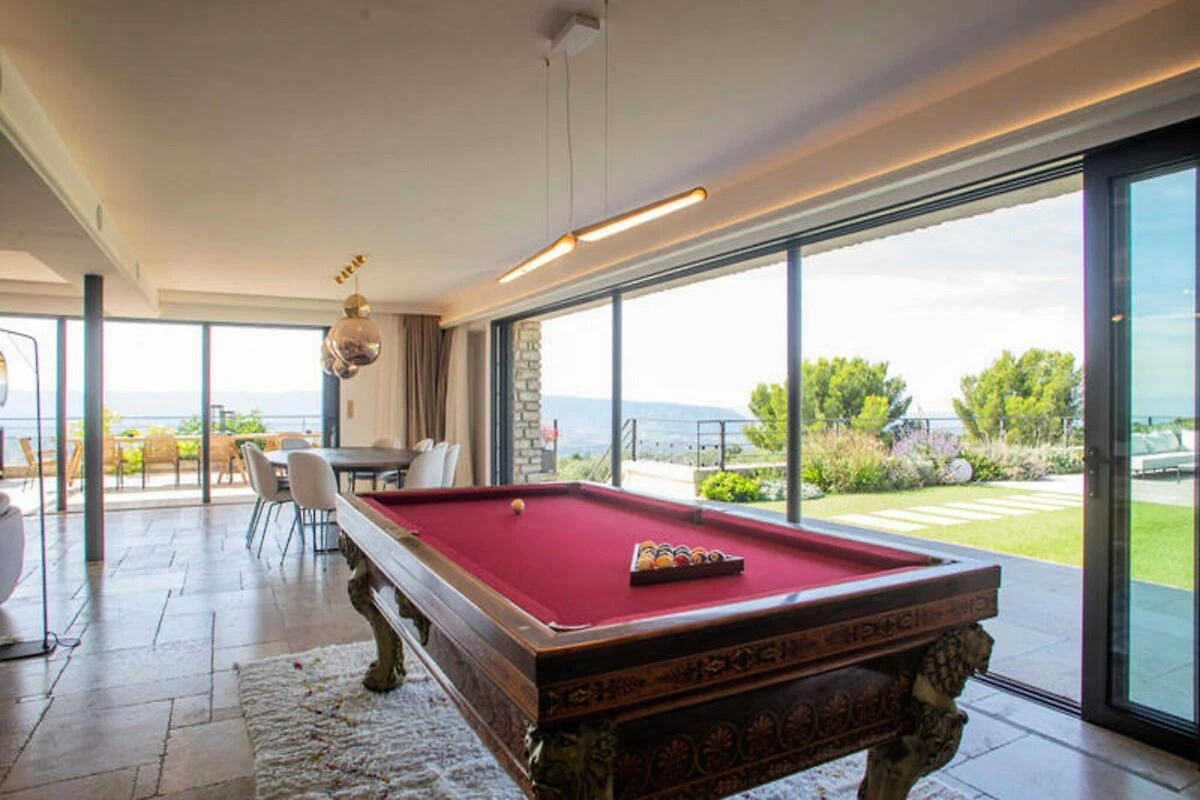Die Villa erstreckt sich über beeindruckende 450 m² und ist durchdacht gestaltet, um Privatsphäre und Geselligkeit gleichermaßen zu gewährleisten. Das Haupthaus und vier Nebengebäude beherbergen acht geräumige Schlafzimmer, jeweils mit eigenem Bad, sodass sich alle Gäste wohlfühlen. Eine voll ausgestattete Küche mit Kochinsel öffnet sich zu einem hellen Wohnbereich und einer traumhaften Terrasse, die sich ideal für Mahlzeiten im Freien eignet. Mit zwei Esszimmern für bis zu 16 Personen ist diese Villa perfekt für Treffen mit Familie oder Freunden. Zu den modernen Annehmlichkeiten gehören ein beheizter Swimmingpool, ein Fitnessraum, Billard und WLAN. Der tägliche Reinigungsservice sorgt für einen reibungslosen Aufenthalt.