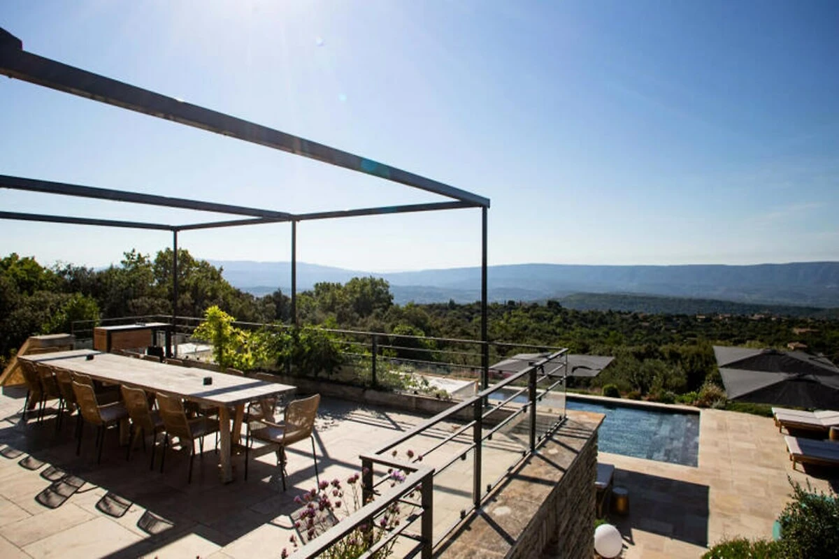 Im Herzen der Provence, wo sanfte Lavendelfelder auf die goldenen Farbtöne der Luberon-Hügel treffen, bietet diese luxuriöse Villa einen unvergleichlichen Rückzugsort im malerischen Dorf Gordes. Hoch oben auf den Hügeln gelegen, vereint das Anwesen die Eleganz eines Fünf-Sterne-Hotels mit der Gemütlichkeit eines Familienhauses und schafft so eine Atmosphäre von raffiniertem Komfort und Ruhe. Vom ersten Moment Ihrer Ankunft an werden Sie von den atemberaubenden Ausblicken und der friedlichen Umgebung verzaubert sein und dem Alltag perfekt entfliehen können.