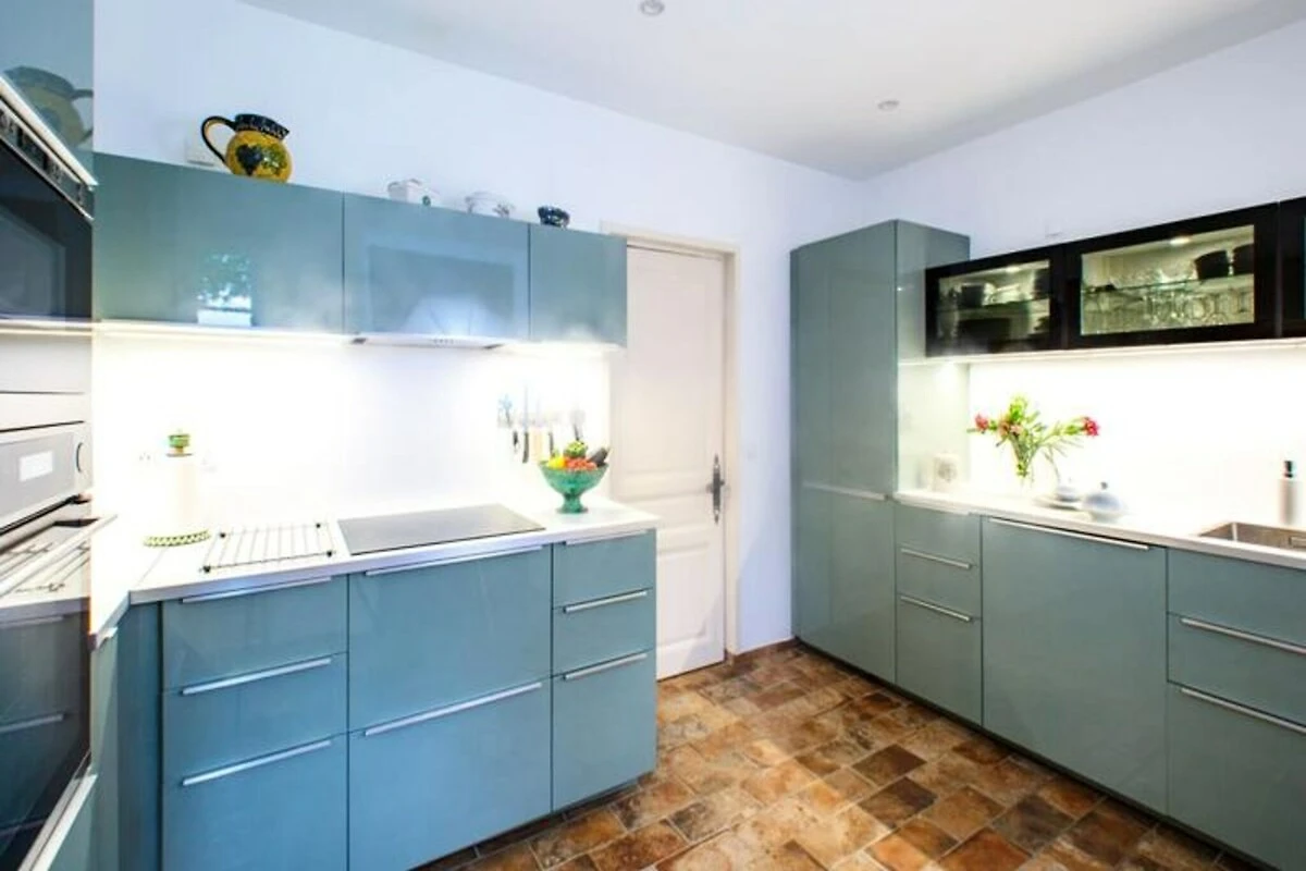 Die acht Schlafzimmer der Bastide, darunter drei Suiten, vereinen modernen Komfort mit provenzalischem Charme. Jedes Zimmer bietet einen atemberaubenden Blick auf die umliegenden Berge, den Park oder den Pool und garantiert so erholsame Nächte in ruhiger Umgebung. Auch die Außenbereiche sind einladend: Mehrere Terrassen laden zum Essen im Freien ein, und das Poolhaus ist mit Kühlschrank, Wasserhahn und Plancha-Grill für sommerliche Feste ausgestattet.