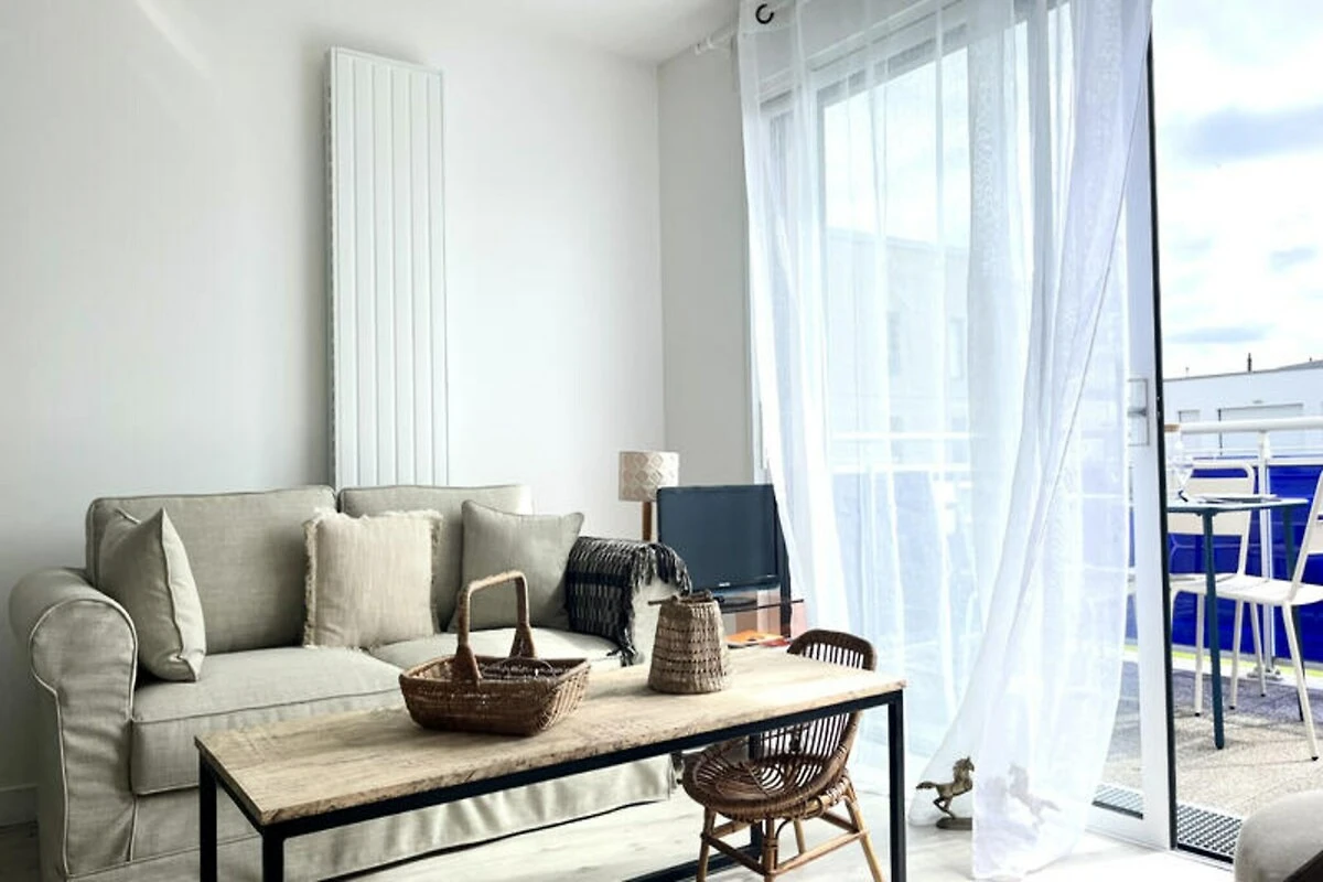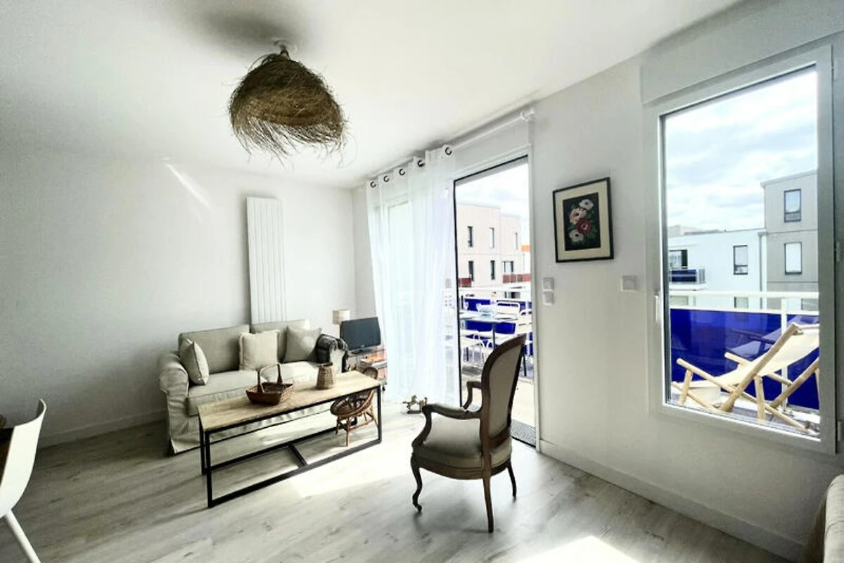 Im charmanten Herzen von Croix de Vie bietet dieses elegante Apartment im ersten Stock einen ruhigen Rückzugsort für alle, die Komfort und Küstenflair suchen. Der lichtdurchflutete Wohnbereich mit offenem Grundriss lädt zum Entspannen ein und verfügt über eine voll ausgestattete Küche, einen gemütlichen Wohnbereich und ein Einzelbett für zusätzlichen Komfort. Das Schlafzimmer mit einem luxuriösen Queensize-Bett (200 x 200 cm) verspricht erholsame Nächte, während das moderne Badezimmer alle Annehmlichkeiten von zu Hause bietet. Genießen Sie Ihren Morgenkaffee oder einen abendlichen Aperitif auf dem geräumigen Balkon und lassen Sie die friedliche Atmosphäre dieses malerischen Küstenortes auf sich wirken.