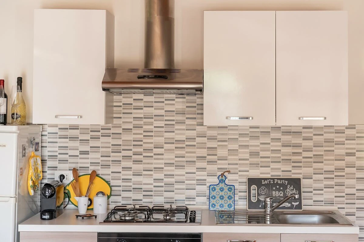Im Inneren lädt das Wohnzimmer mit gemütlicher Sitzecke, Esstisch und Fernseher zum Verweilen nach einem Tag am Meer ein. Zwei offene Küchen, jeweils ausgestattet mit Herd, Wasserkocher, Toaster, Kühl-/Gefrierkombination und Backofen oder Mikrowelle, erleichtern die Zubereitung von Mahlzeiten – egal ob Sie ein großes Familienessen oder ein einfaches Frühstück zubereiten möchten. Drei komfortable Schlafzimmer, darunter ein Galeriezimmer mit Doppelbett, bieten erholsame Nächte, während zwei moderne Badezimmer mit Dusche, Bidet und Waschmaschine für einen angenehmen Aufenthalt sorgen. Die Klimaanlage hält das Haus an warmen sizilianischen Tagen angenehm kühl.