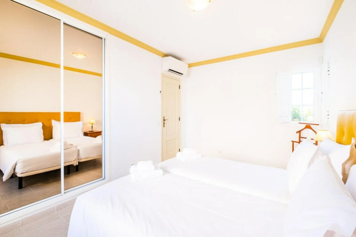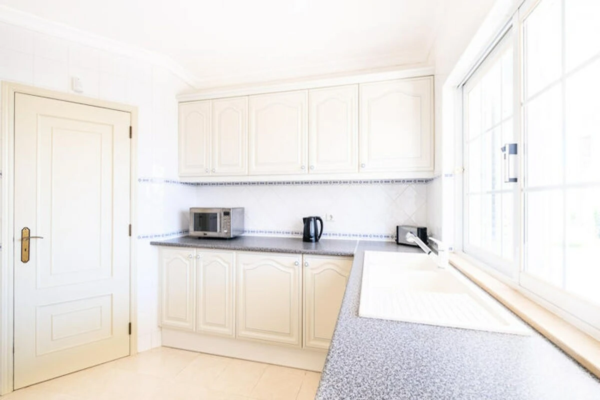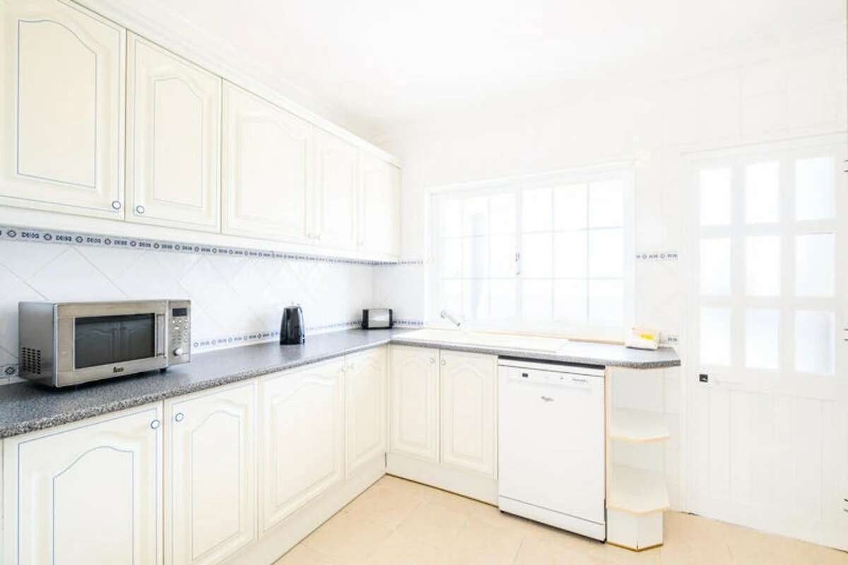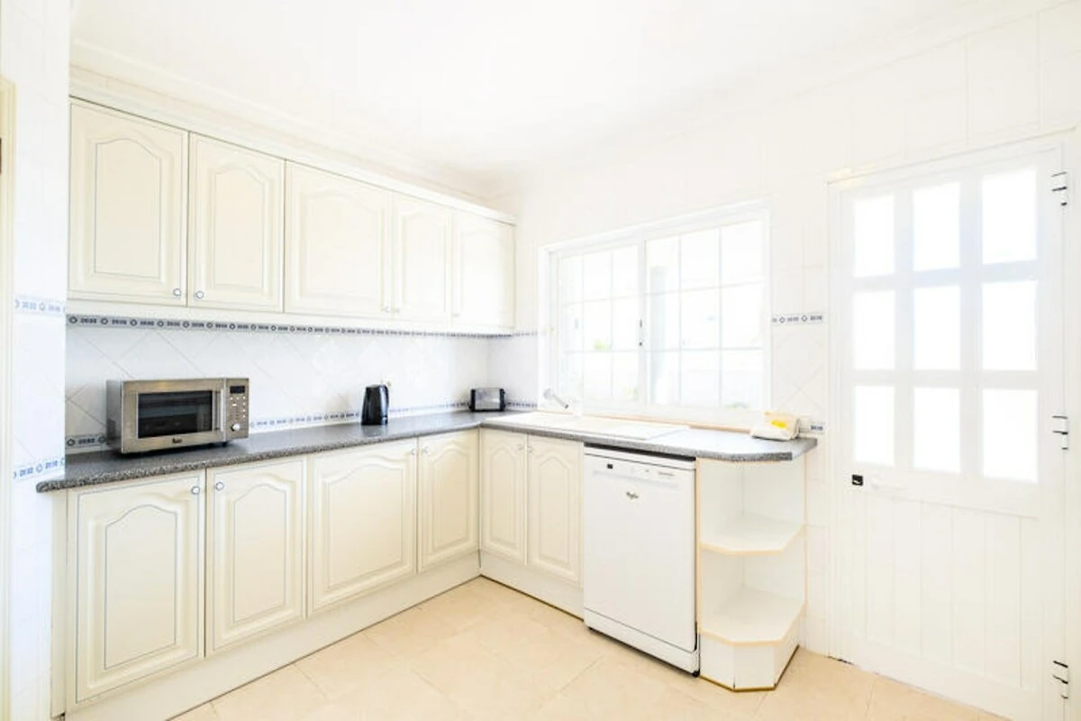 Treten Sie ein und entdecken Sie ein Ambiente, das Komfort und Eleganz vereint. Die Villa verfügt über fünf geräumige Schlafzimmer, die alle liebevoll eingerichtet sind und einen erholsamen Rückzugsort bieten. Die offenen Wohn- und Essbereiche sind lichtdurchflutet und schaffen eine warme und einladende Atmosphäre. Eine voll ausgestattete Küche ermöglicht die mühelose Zubereitung von Mahlzeiten, egal ob Sie ein schnelles Frühstück zubereiten oder ein entspanntes Abendessen genießen möchten. Draußen lädt der private Pool zu erfrischenden Bädern unter der portugiesischen Sonne ein, während Terrasse und Garten den perfekten Rahmen für Mahlzeiten im Freien oder entspannte Stunden mit einem guten Buch bieten.