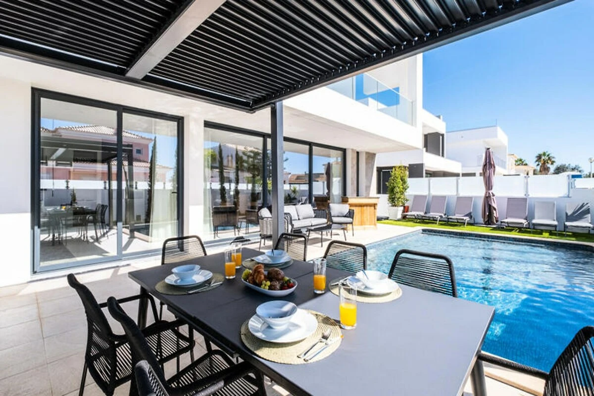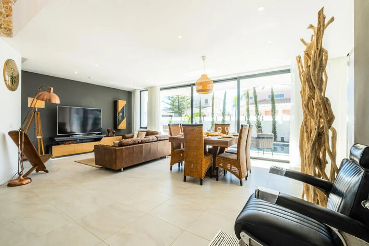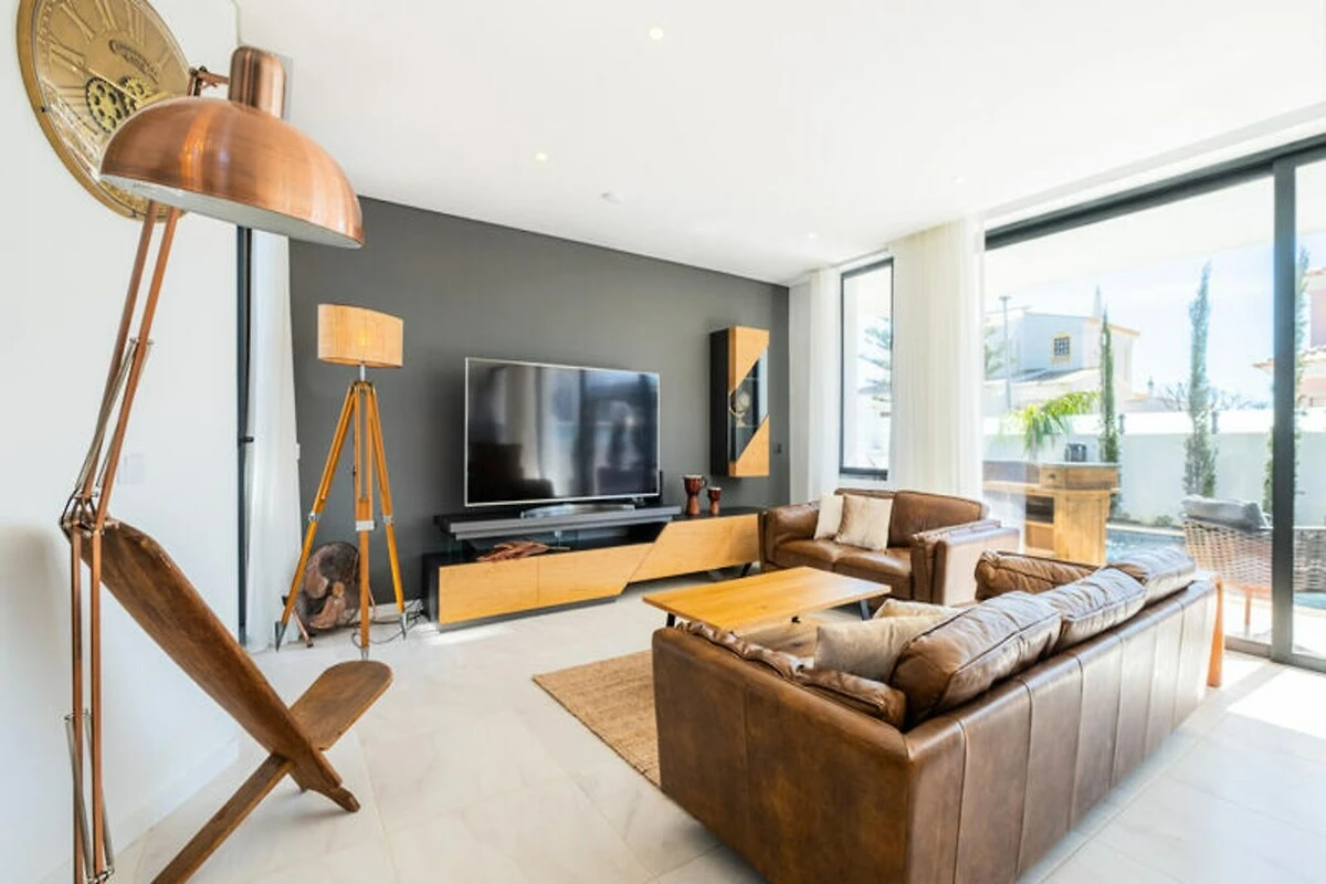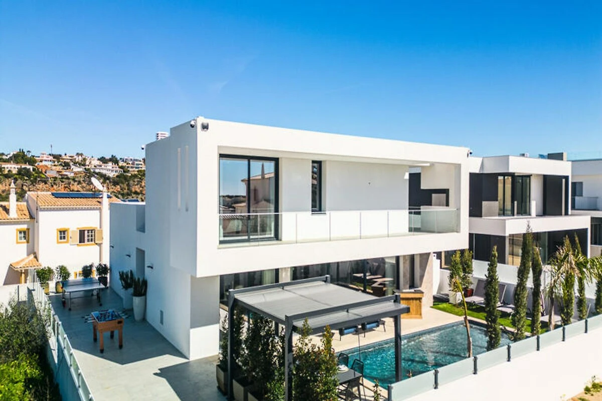 Stellen Sie sich vor, Sie wachen in einer Oase der Ruhe auf, durch deren Fenster die goldene Sonne der Algarve scheint und Sie einlädt, den Tag zu genießen. Dieses luxuriöse Haus in Albufeira bietet Entspannung und Unterhaltung gleichermaßen und ist somit der perfekte Rückzugsort für Familien oder Freundesgruppen. Nur 1,5 km vom Strand entfernt, vereint es die Ruhe eines privaten Refugiums mit der Nähe zum pulsierenden Küstenleben der Algarve. Ob Sie sonnige Tage am Meer oder ruhige Abende unter dem Sternenhimmel suchen – dieses Anwesen ist Ihr Tor zu unvergesslichen Momenten. Das zweistöckige Haus verfügt über drei geräumige Schlafzimmer und einen großzügigen, offenen Wohnbereich mit gemütlichem Wohnzimmer, elegantem Essbereich und einer voll ausgestatteten Küche. Fitnessbegeisterte werden die Fitnessgeräte, darunter Laufband und Ergometer, zu schätzen wissen, während Erholungssuchende den privaten Pool inmitten üppiger Vegetation genießen können. Der Grillplatz im Freien lädt zu Mahlzeiten unter freiem Himmel ein, und Tischtennisplatte und Tischfußball versprechen stundenlangen Spielspaß für Groß und Klein. Jedes Detail wurde sorgfältig ausgewählt, um Ihren Aufenthalt so komfortabel wie unvergesslich zu gestalten. \n\nUnweit des Anwesens erwarten Sie die traumhaften Strände von Albufeira mit kristallklarem Wasser und goldenem Sand – ideal zum Sonnenbaden, Schwimmen oder für Wassersport. Die nahegelegene Stadt lockt mit charmanten Restaurants, lebhaften Bars und lokalen Märkten und bietet Ihnen einen Einblick in die authentische portugiesische Kultur. Erkunden Sie die atemberaubende Küste der Algarve, unternehmen Sie Ausflüge in die sanfte Hügellandschaft oder entspannen Sie einfach am Pool mit einem erfrischenden Getränk. \n\nDieses Haus ist mehr als nur eine Unterkunft – es ist ein Reiseziel für sich. Buchen Sie noch heute Ihren Urlaub und entdecken Sie, warum Albufeira zu den beliebtesten Urlaubsorten Portugals zählt.