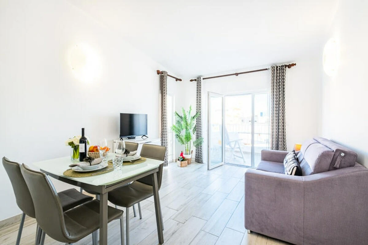 Das Apartment mit einem Schlafzimmer ist durchdacht gestaltet und bietet Komfort und Stil zugleich. Der offene Wohnbereich verfügt über eine gemütliche Sitzecke, eine voll ausgestattete Küche und große Fenster, die den Raum mit Tageslicht durchfluten. Das Schlafzimmer mit seiner weichen Bettwäsche und den beruhigenden Farbtönen sorgt für erholsame Nächte nach erlebnisreichen Tagen. Moderne Annehmlichkeiten wie WLAN, Klimaanlage und ein Flachbildfernseher erhöhen den Komfort und machen das Apartment zur idealen Wahl für Paare oder Alleinreisende, die einen ruhigen Rückzugsort suchen. Treten Sie vor die Tür und schon sind Sie nur einen kurzen Spaziergang von Albufeiras goldenen Stränden, lebhaften Restaurants und charmanten Kopfsteinpflastergassen entfernt. Der Yachthafen mit seinen bunten Booten und seiner pulsierenden Atmosphäre lädt zu einem entspannten Nachmittag ein, während nahegelegene Attraktionen wie die historische Altstadt und die malerischen Klippen des Strandes São Rafael unzählige Möglichkeiten für Abenteuer bieten. Für Naturliebhaber sind die berühmten Wanderwege und Golfplätze der Algarve bequem zu erreichen.