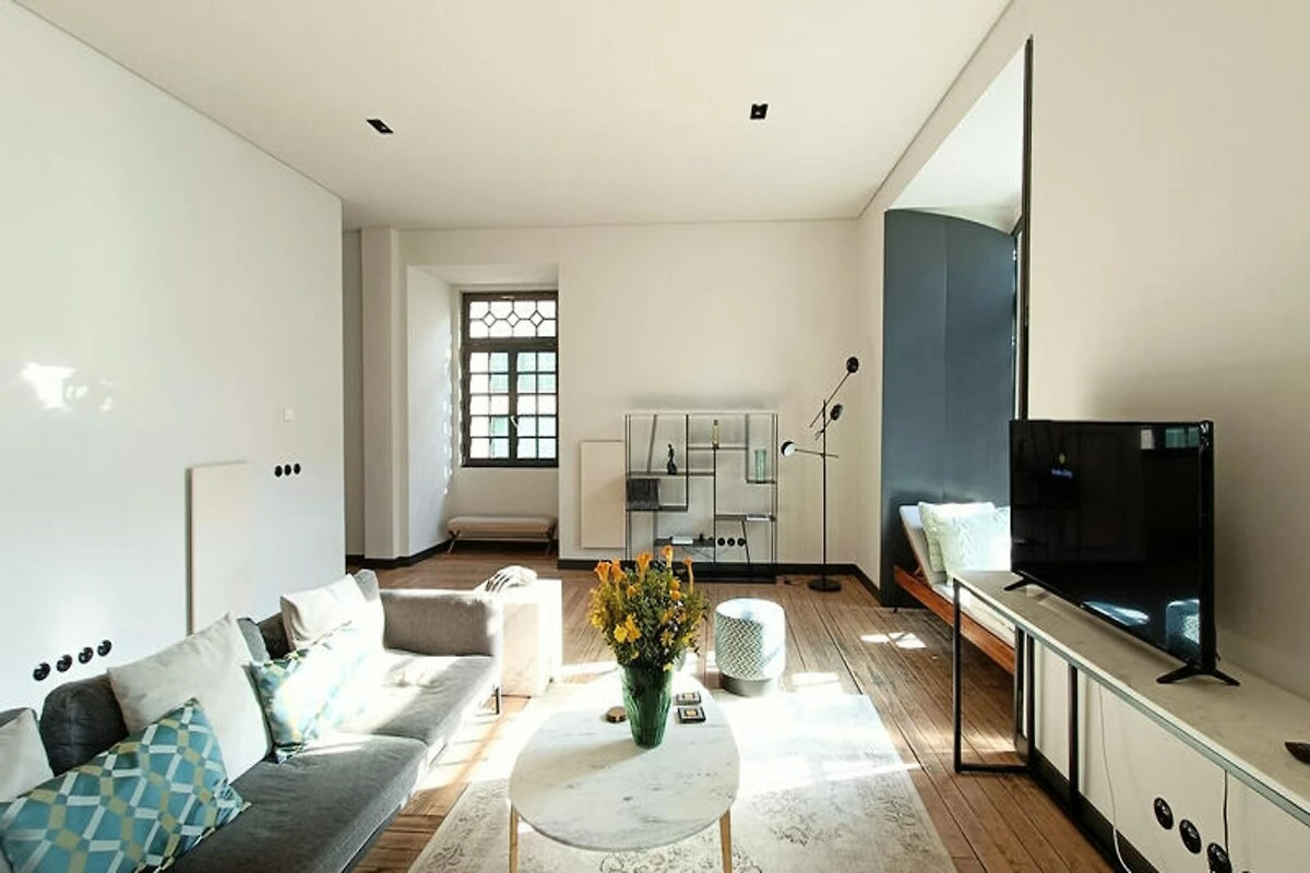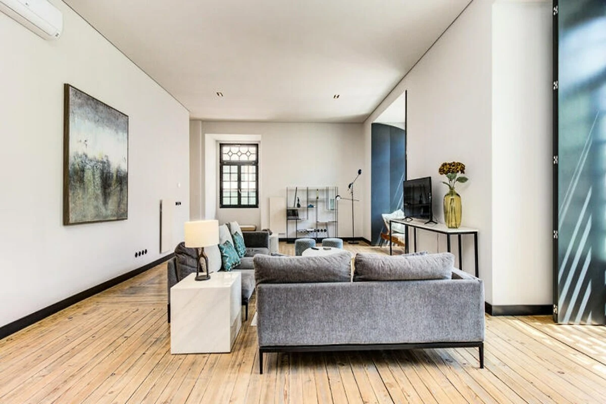 Mitten im pulsierenden Lissaboner Stadtteil São Paulo bietet dieses elegante Apartment eine Oase der Ruhe inmitten des lebhaften Flairs der Stadt. Nur wenige Schritte vom berühmten TimeOut Market und dem geschäftigen Cais do Sodré entfernt, tauchen Sie ein in das kulturelle Herz Lissabons. Ob der Duft frisch gebrühten Kaffees aus den nahegelegenen Cafés oder die sanfte Brise vom Tejo – hier ist jeder Moment ein Genuss des Stadtlebens. Das geschmackvoll eingerichtete Apartment erstreckt sich über beeindruckende 200 m² und bietet bequem Platz für bis zu sechs Gäste in drei geräumigen Schlafzimmern. Der offene Grundriss, ergänzt durch moderne Annehmlichkeiten wie Klimaanlage, Zentralheizung und Highspeed-WLAN, sorgt für einen komfortablen und unkomplizierten Aufenthalt. Die voll ausgestattete Küche mit Induktionskochfeld, Geschirrspüler und Kaffeemaschine lädt zum Zubereiten köstlicher Mahlzeiten ein, während die 10 m² große Terrasse der perfekte Ort ist, um bei einem Glas Wein den Blick über die Stadt zu genießen. Zusätzliche Annehmlichkeiten wie Waschmaschine, Trockner und Sat-TV sorgen für Komfort sowohl bei kurzen als auch bei längeren Aufenthalten.