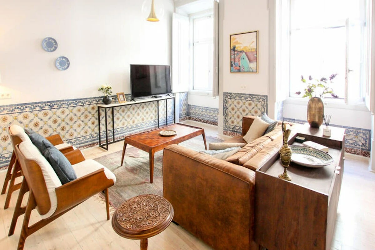 Tauchen Sie ein in das pulsierende Herz Lissabons mit diesem wunderschön eingerichteten Apartment mit drei Schlafzimmern, das modernen Komfort und historischen Charme perfekt vereint. Nur wenige Schritte vom berühmten Chiado-Viertel entfernt, bietet diese geräumige 130 m² große Residenz Platz für bis zu sechs Gäste und ist somit die ideale Wahl für Familien oder Freundesgruppen, die einen unvergesslichen Städtetrip erleben möchten. Schon bei Ihrer Ankunft werden Sie von der geschmackvollen Einrichtung begeistert sein, die Stil und Entspannung vereint.