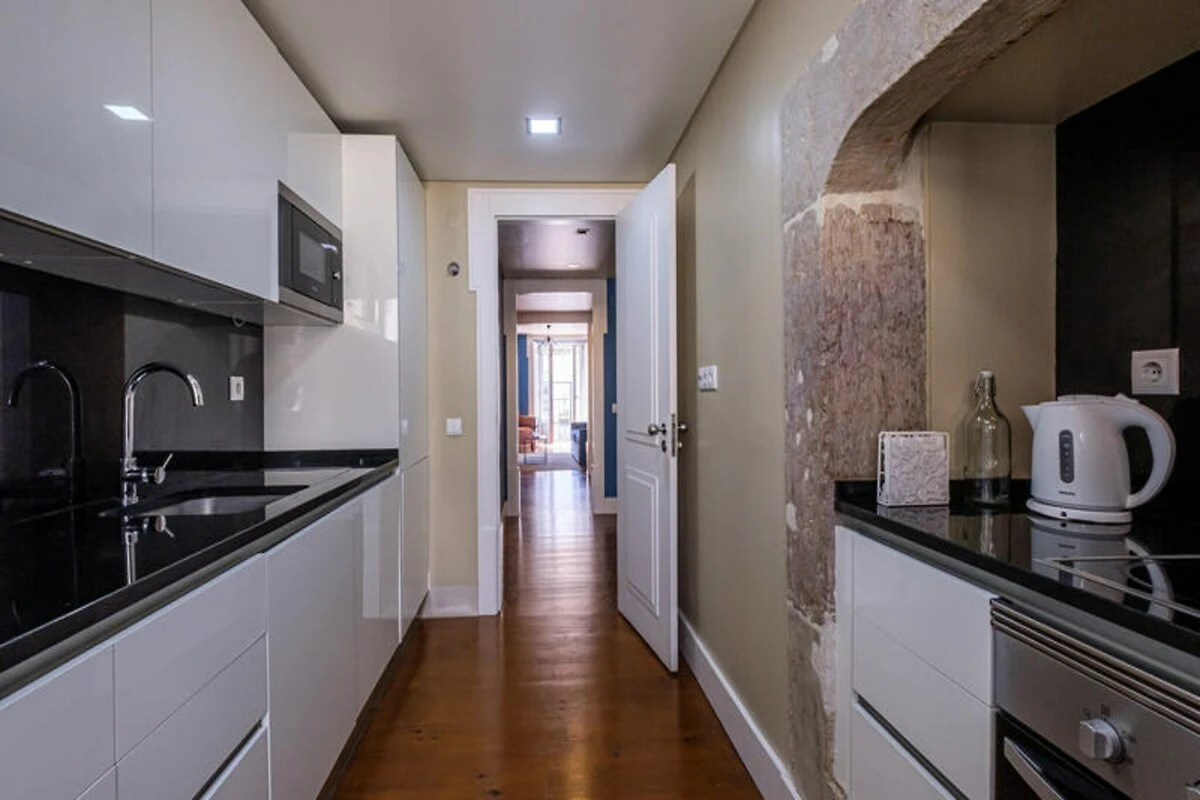 Mitten im pulsierenden Herzen Lissabons lädt dieses geräumige und moderne Apartment Sie ein, den Charme der portugiesischen Hauptstadt mit dem Komfort von zu Hause zu erleben. Nur wenige Schritte vom glitzernden Wasser des Tejo entfernt, bietet diese Unterkunft die perfekte Mischung aus urbanem Komfort und erholsamer Ruhe. Ob Sie die historischen Straßen von Baixa Chiado erkunden oder die lebhafte Atmosphäre der nahegelegenen Cafés und Geschäfte genießen möchten – von hier aus sind Sie mittendrin.