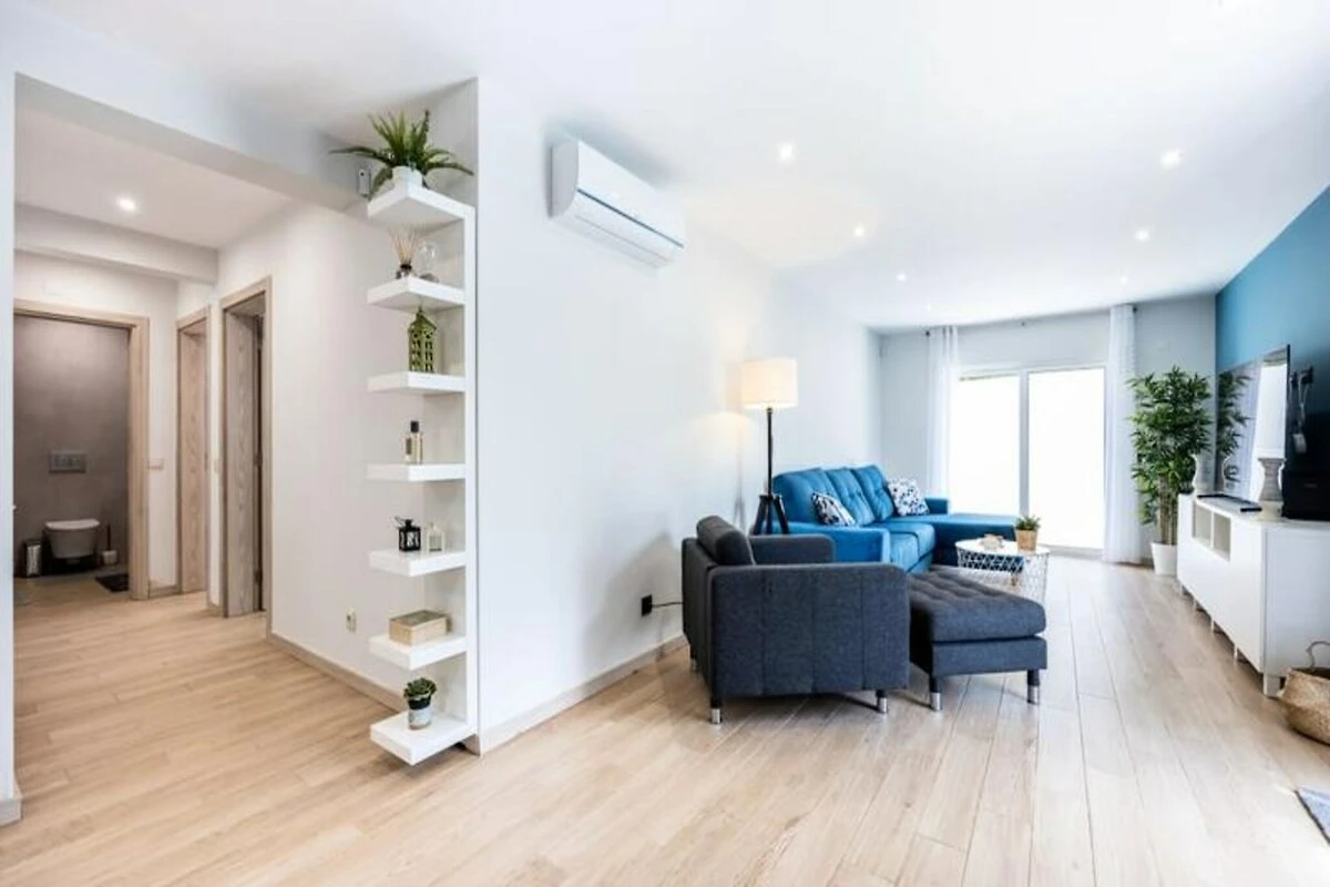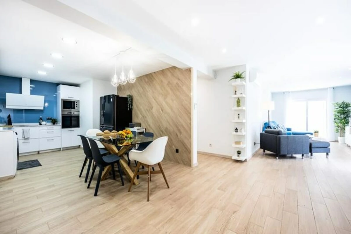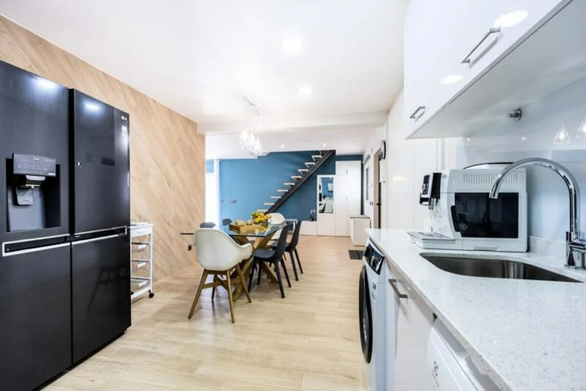 Im Inneren erstreckt sich die 200 Quadratmeter große Villa mit ihrer modernen Eleganz über zwei geräumige Etagen. Der offene Wohnbereich verbindet die voll ausgestattete Küche nahtlos mit der gemütlichen Lounge und schafft so einen perfekten Raum für gemeinsame Mahlzeiten und Gespräche. Im Obergeschoss bieten drei helle Schlafzimmer einen erholsamen Rückzugsort, während das Erdgeschoss über ein zusätzliches Schlafzimmer für noch mehr Komfort verfügt. Die Klimaanlage sorgt für Komfort im gesamten Gebäude, während Highspeed-WLAN und ein großer Fernseher es Ihnen leicht machen, sich nach einem erlebnisreichen Tag zu entspannen. Die raffinierte Einrichtung und das durchdachte Design der Villa schaffen eine Atmosphäre von müheloser Eleganz.