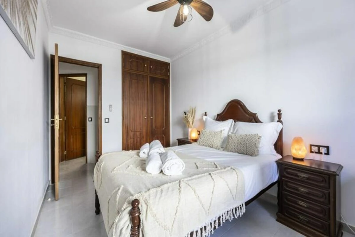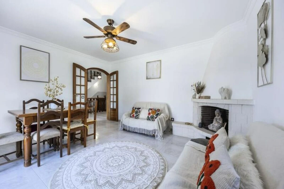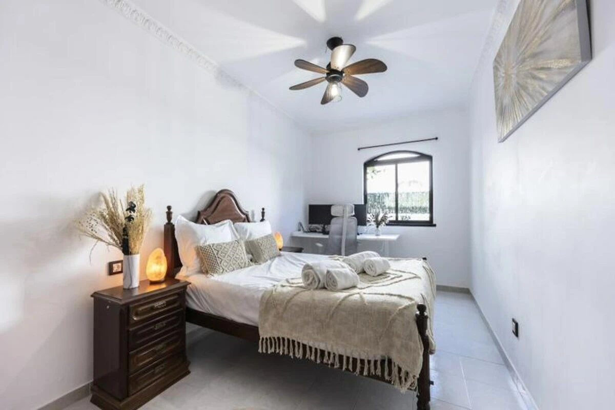 Treten Sie ein und entdecken Sie ein durchdacht gestaltetes Zuhause. Im Erdgeschoss befindet sich ein helles und luftiges Wohnzimmer mit bequemen Sitzgelegenheiten und einem Essbereich – ideal zum Zusammensein nach einem erlebnisreichen Tag. Die voll ausgestattete Küche macht die Zubereitung von Mahlzeiten zum Kinderspiel, während das Schlafzimmer im Erdgeschoss mit eigenem Bad und Arbeitsbereich Komfort und Funktionalität vereint. Im Obergeschoss bieten drei geschmackvoll eingerichtete Schlafzimmer und zwei weitere Badezimmer ausreichend Platz für alle. Private Balkone im Obergeschoss laden zum Genießen des Morgenkaffees oder der Nachmittagssonne ein. Deckenventilatoren in allen Zimmern sorgen auch an den heißesten Tagen für einen angenehm kühlen Aufenthalt.