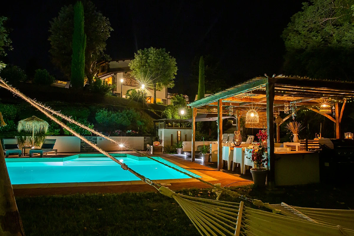 Willkommen im Ferienhaus Erholungsurlaub Segromigno – Ihr Refugium für einen unvergesslichen Aufenthalt in der Toskana! Dieses großzügige Anwesen bietet auf 360 m² Platz für bis zu 12 Gäste und vereint Komfort, Erholung und zahlreiche Annehmlichkeiten. Der weitläufige Garten mit schattigen Plätzen und gepflegtem Rasen lädt zum Entspannen ein. Genießen Sie sonnige Tage am Swimmingpool mit gemütlichen Sonnenliegen oder lassen Sie den Abend auf der Terrasse beim Grillen am BBQ-Grill ausklingen. Für sportliche Abwechslung steht Ihnen ein Fitnessraum zur Verfügung, während der Whirlpool für pure Entspannung sorgt. Die klimatisierten Räume bieten auch an warmen Tagen angenehme Temperaturen, und ein Kamin sorgt für behagliche Stunden. Die voll ausgestattete Küche verfügt über Geschirrspüler, Mikrowelle, Wasserkocher und Kaffeemaschine – frischer Kaffee am Morgen ist garantiert. Bettwäsche, Waschmaschine, Trockner, Bügeleisen sowie Föhn sind vorhanden, ebenso wie TV und kostenloses WLAN. Für Familien stehen ein Babybett und ein Hochstuhl bereit. Der Parkplatz am Haus bietet bequemen Komfort. Das Ferienhaus ist ausschließlich für Nichtraucher und bietet eine allergikerfreundliche Umgebung. Mechaniker finden hier ebenfalls ideale Voraussetzungen. Erleben Sie toskanische Lebensfreude, Spielmöglichkeiten für Kinder und gesellige Stunden im Freien – Ihr Urlaub beginnt hier!