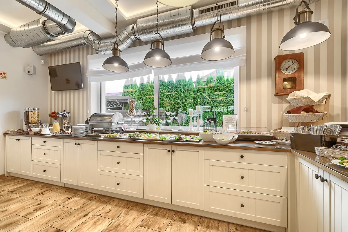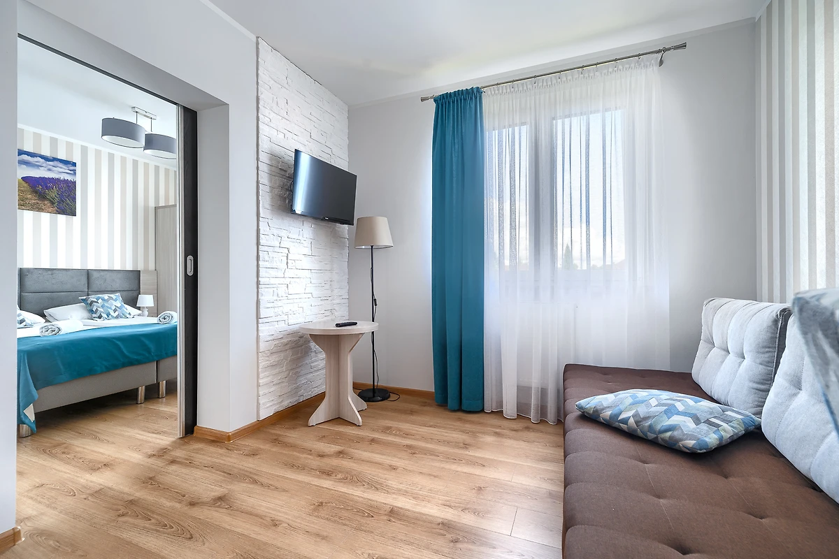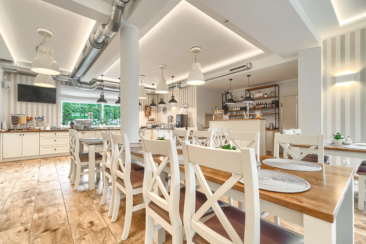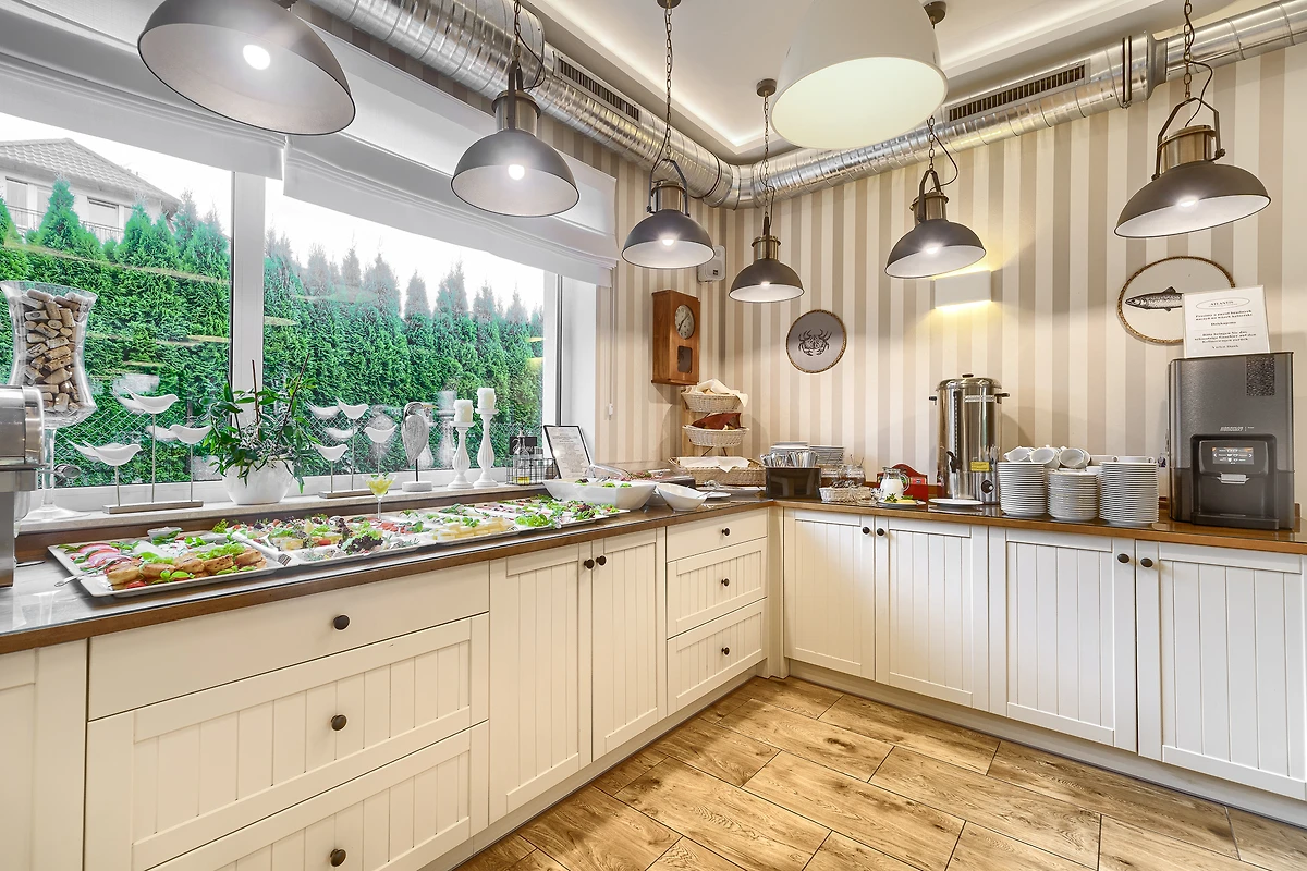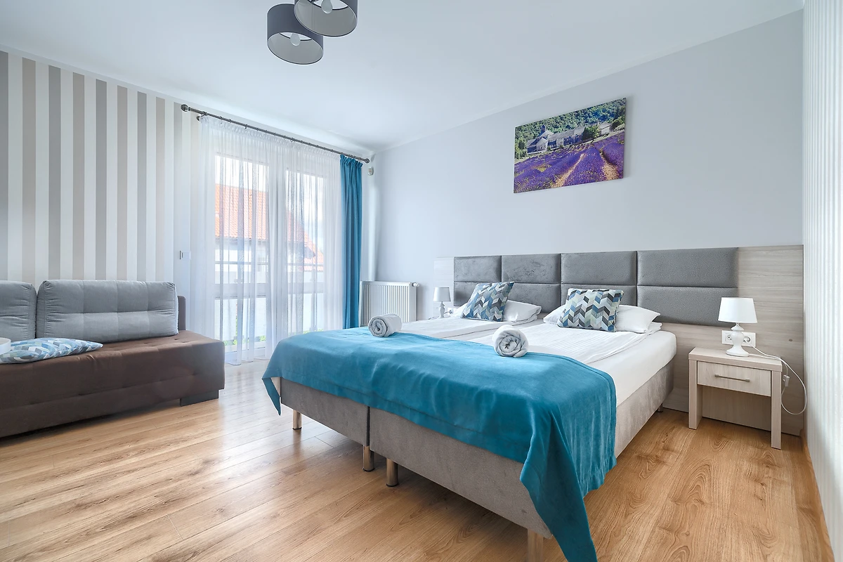Die voll ausgestattete Küchenzeile bietet alles, was Sie für die Zubereitung Ihrer Mahlzeiten benötigen – von Kaffeemaschine und Wasserkocher bis hin zu Geschirr und Besteck. Ein geräumiger Essbereich sorgt für gemeinsame Genussmomente. Im Wohnbereich erwartet Sie ein TV für entspannte Abende. Kostenloses WLAN, Bügeleisen und Bettwäsche gehören selbstverständlich dazu. Für Ihr Fahrzeug steht ein sicherer Parkplatz zur Verfügung. Unsere Pension ist ausschließlich für Nichtraucher – so genießen Sie stets frische Luft. Die Nähe zum feinen Sandstrand und die ruhige Umgebung machen Ihren Aufenthalt besonders erholsam. Entdecken Sie Grzybowo – wir freuen uns auf Sie!