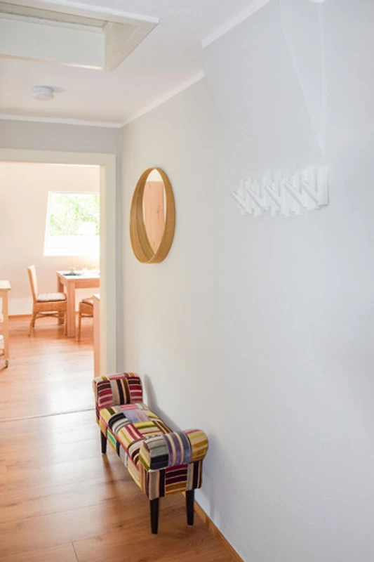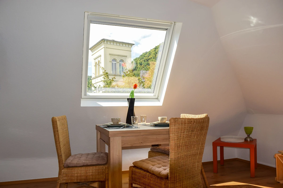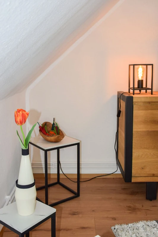 Die Wohnung verbindet behagliches Ambiente mit dem besonderen Charme der Dachschrägen und ist mit viel Liebe zum Detail gestaltet. Hier fühlen Sie sich sofort willkommen – ob für ein entspanntes Wochenende, eine längere Auszeit oder einen Kuraufenthalt.