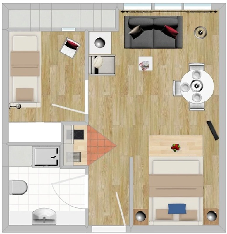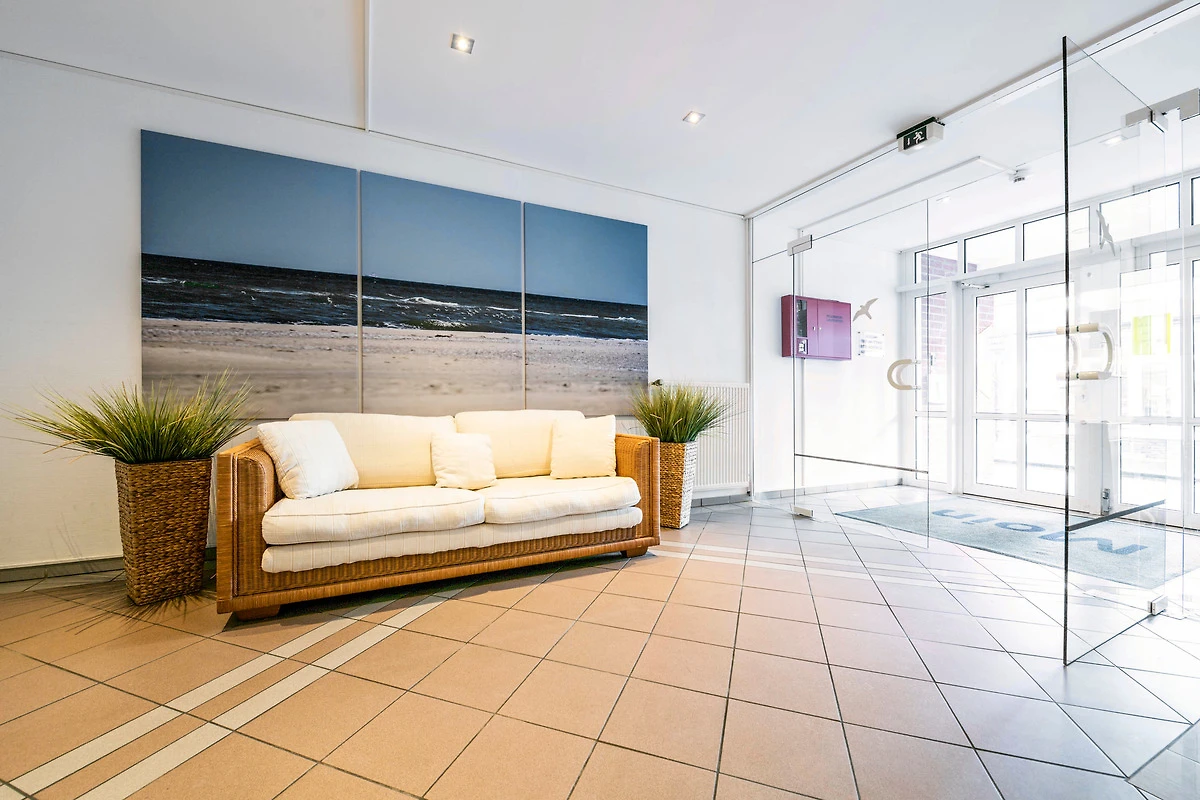 Diese komfortabel eingerichtete Ferienwohnung 307 in der ferienwohnung-juist-strandburg mit Schwimmbad und Sauna wurde 2025 komplett renoviert und eignet sich perfekt für 2 bis 3 Personen. Die Wohnung besteht aus 2 Zimmern. Im Wohnraum mit gemütlichem Sofa und Sessel steht optisch getrennt das freistehende Doppelbett (statt Schlafsofa). Geniessen Sie Ihr Lieblingsprogramm auf dem schwenkbaren Smart TV, entweder vom Sofa oder vom Bett aus. Im 2. Zimmer befindet sich die 3. Schlafmöglichkeit, sodass dieses Zimmer einen weiteren Rückzugsort bietet. Die Küchenzeile ist komplett ausgestattet mit Kühlschrank, Geschirrspüler, 2er Induktionskochfeld, Kaffeemaschine, Wasserkocher etc. Am runden Esstisch finden bis zu drei Personen Platz. Den Gästen der Inselresidenz Strandburg steht der hauseigene Wellnessbereich mit Schwimmbad und Sauna zur Verfügung. Im Mietpreis enthalten sind Bettwäsche, Handtücher, Geschirrtücher. Ein Hochstuhl + Kinderbett auf Anfrage. Bei Anreise liegen Bademäntel für 2 Erwachsene bereit, weitere Bademäntel für Mitreisende auf Anfrage (Kindergrössen vorhanden). Die Wohnung liegt in der 3. Etage und ist problemlos mit einem Aufzug zu erreichen. Bei Ankunft im Haus werden Sie von der freundlichen Hausdame am Empfang begrüsst, die Ihnen auch während Ihres Aufenthaltes bei Fragen gerne zur Verfügung steht. Im Untergeschoss stehen Ihnen Münzwaschmaschinen- und Trockner zur Verfügung. Es ist bis zu 1 Hund gegen Aufpreis in der Wohnung erlaubt. Hierfür gilt die Hunde Hausordnung der Inselresidenz Strandburg.