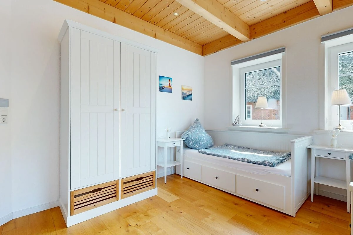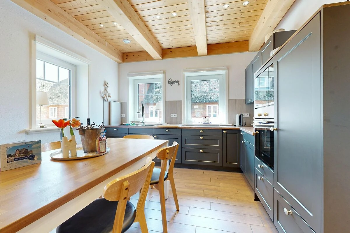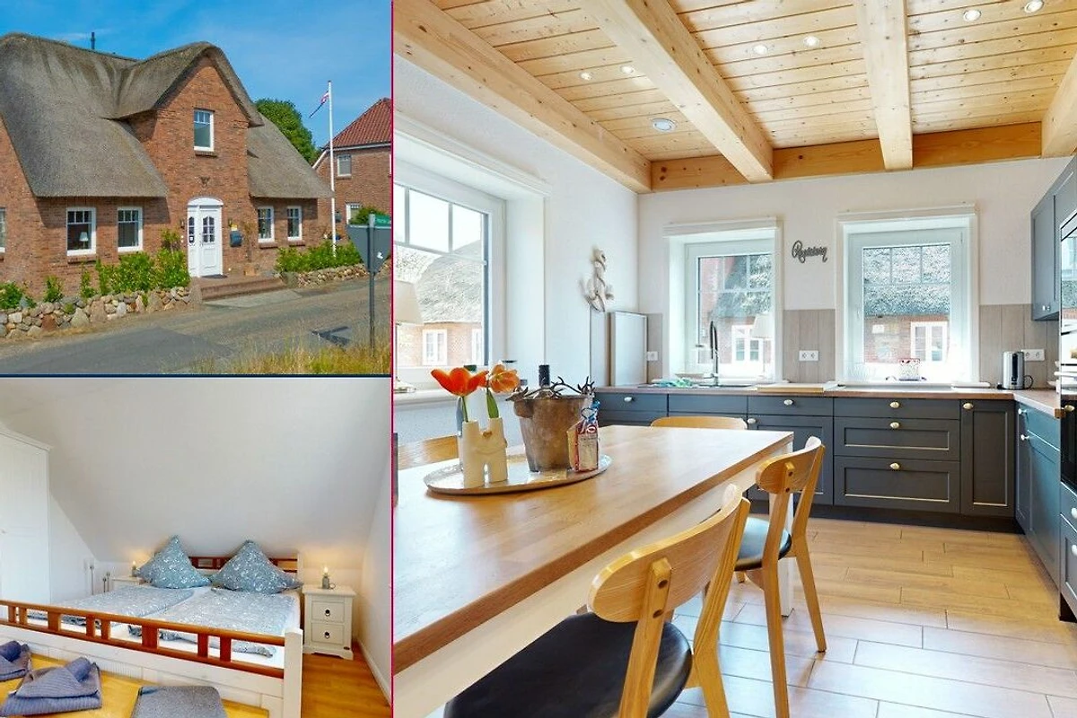 Das reetgedeckte Ferienhaus Tills Hüs verfügt über 3 Schlafzimmer und 2 Bäder und bietet somit komfortabel Platz für bis zu 6 Personen zuzüglich einer Kleinkinderaufbettung. Auch bis zu 2 Hunde sind herzlich willkommen.