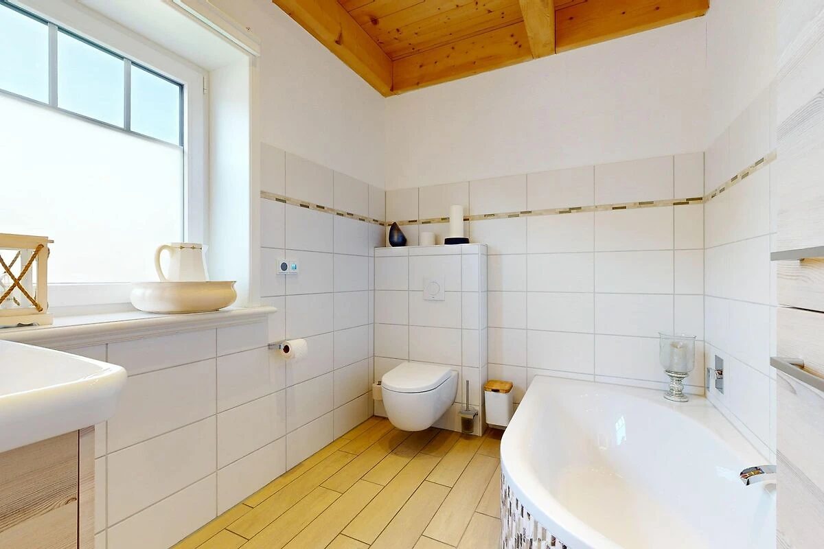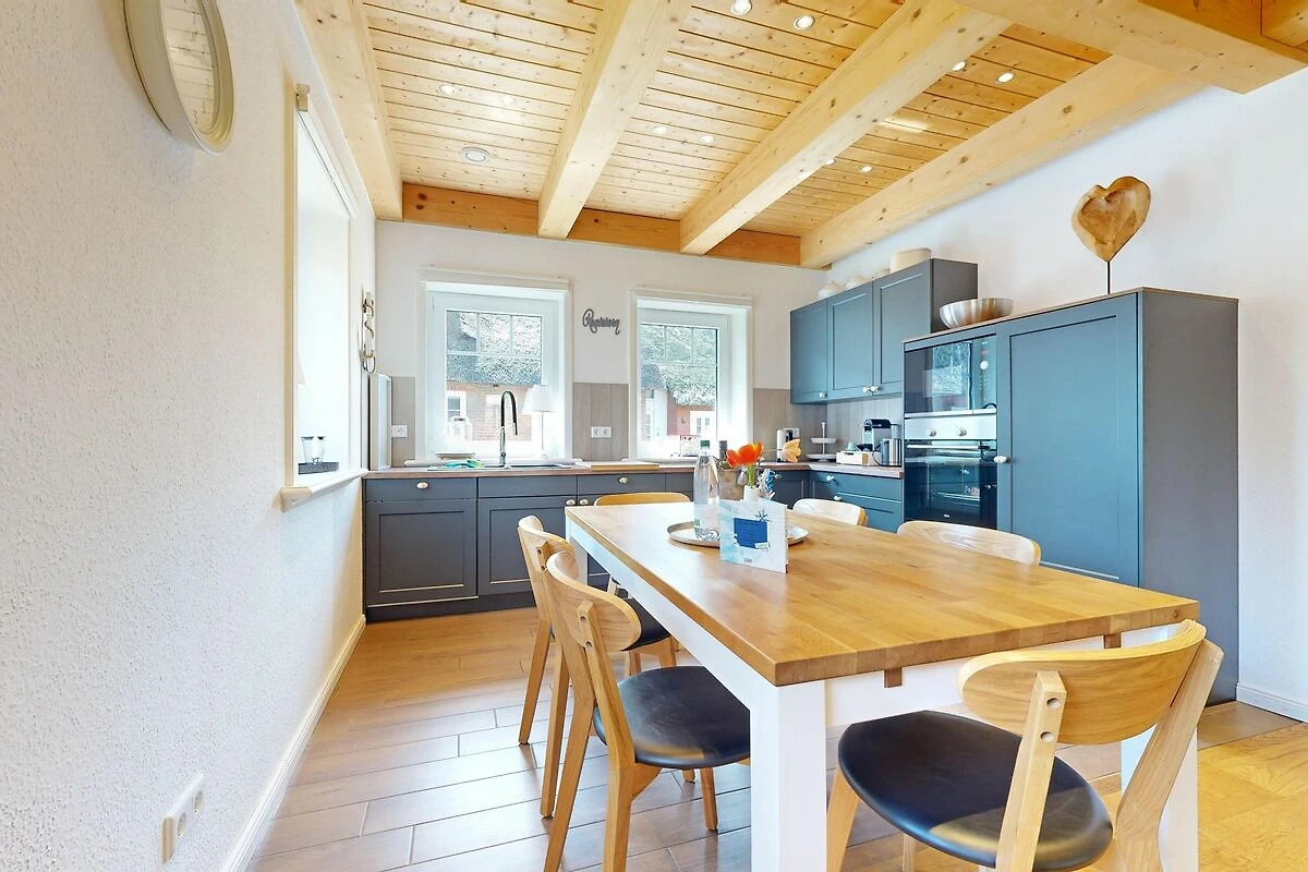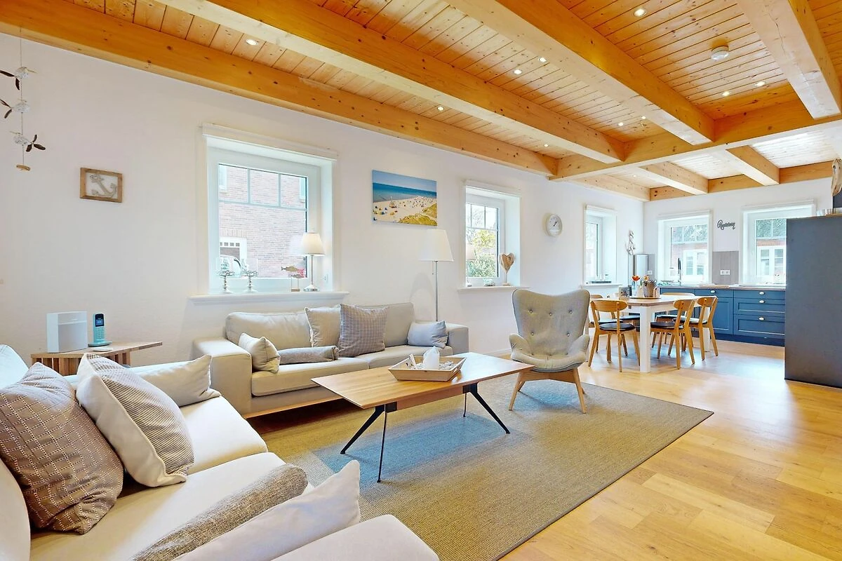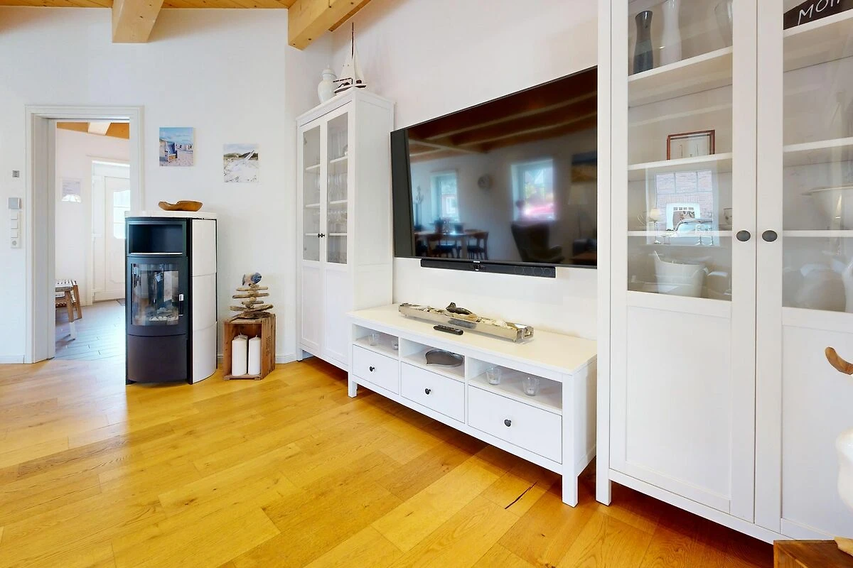 Das reetgedeckte Ferienhaus Tills Hüs verfügt über 3 Schlafzimmer und 2 Bäder und bietet somit komfortabel Platz für bis zu 6 Personen zuzüglich einer Kleinkinderaufbettung. Auch bis zu 2 Hunde sind herzlich willkommen.