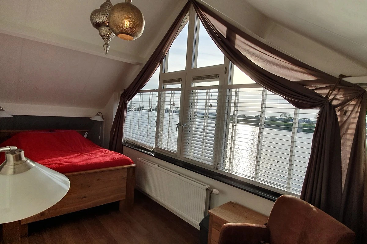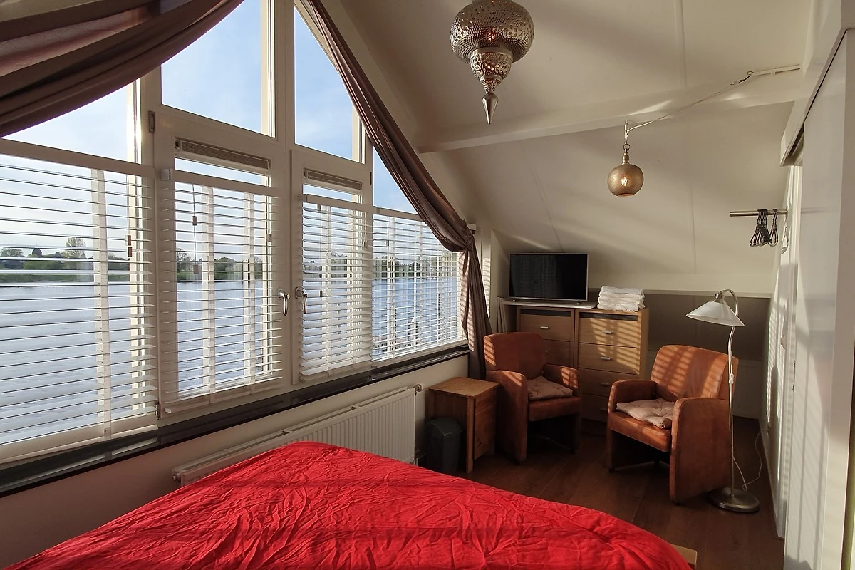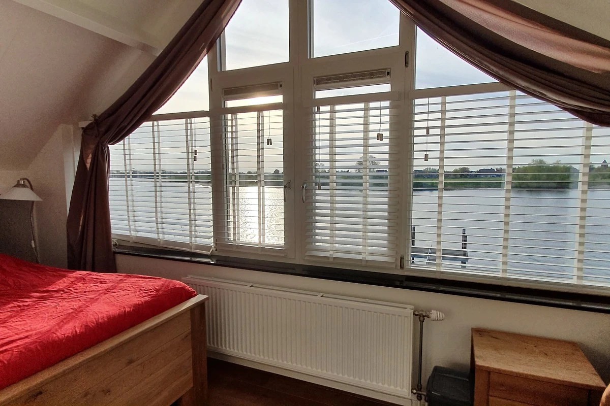 Mit Panorama-Ausblick über den Fluss / 2 x Klimaanlage / Infrarot-Sauna / Badeleiter / Steg / Angeln. 2/4 Pers.