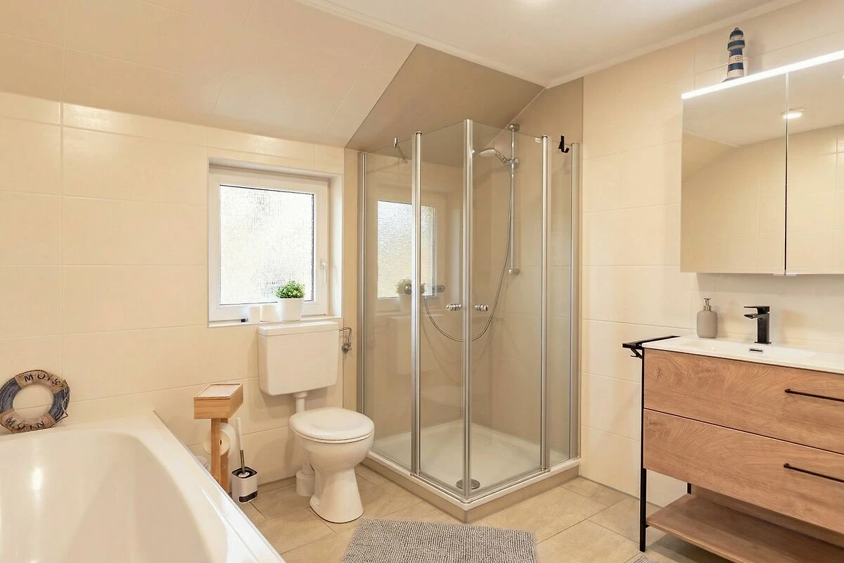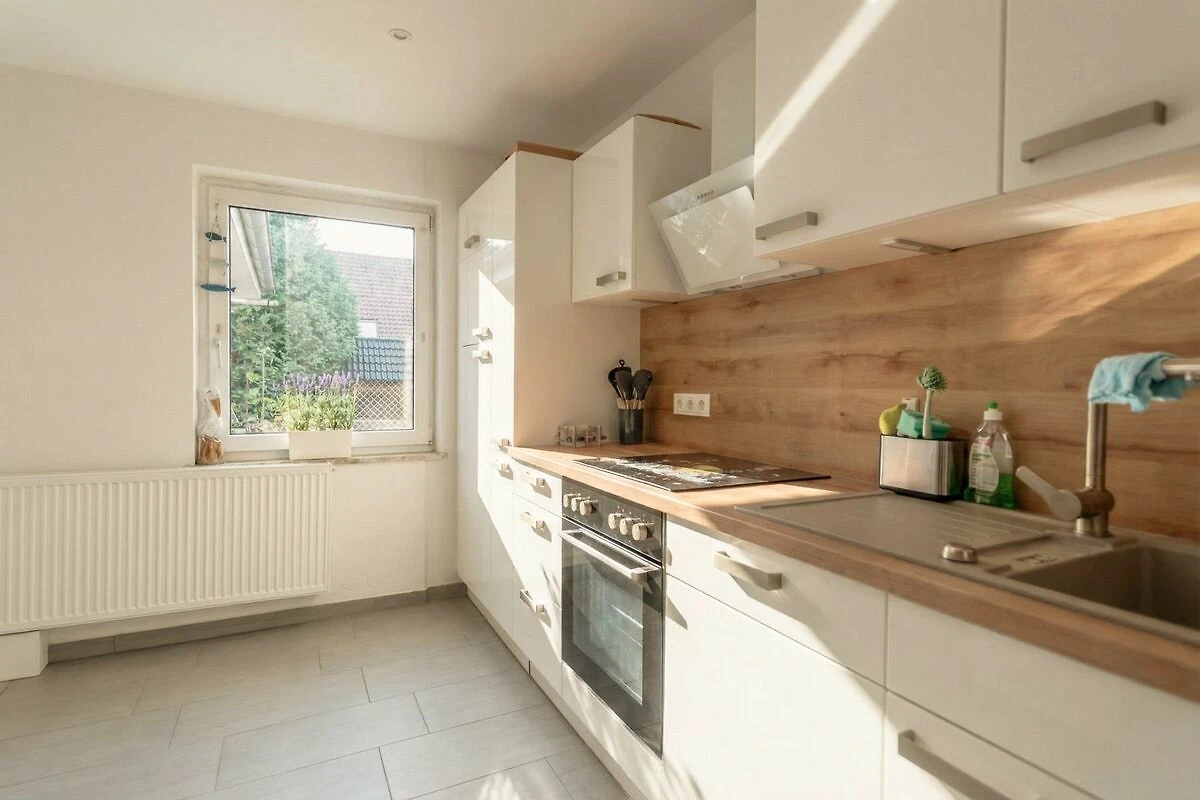 Die lichtdurchfluteten Räume, die hochwertige Küche, das große Badezimmer mit Dusche und Badewanne, die eigene Waschküche und der weitläufige Garten machen die Wohnung zu einem besonderen Ort. Die ruhige Lage in einem Wohngebiet, kombiniert mit der Nähe zum Ortskern und zur Nordsee, schafft eine entspannte und gleichzeitig praktische Umgebung für deinen Aufenthalt.