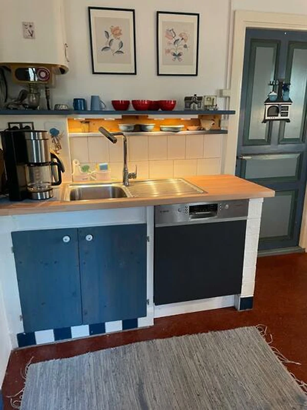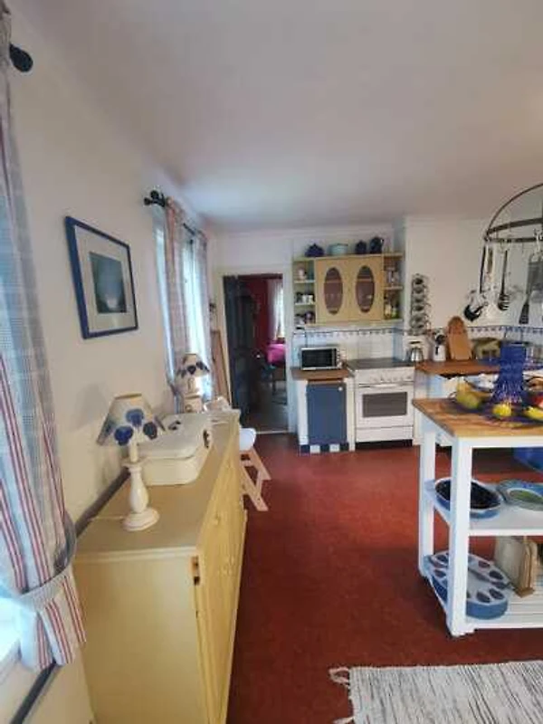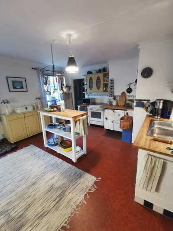 Besuchen Sie auch unsere Website! Im unteren Bereich findet sich die große gemütliche Wohnküche, das Wohnzimmer mit Eck-Kamin, 1 Schlafzimmer mit Boxspringbett 1,40m x 2,00m sowie ein kleines Bad mit Dusche, Handwaschbecken und Wassertoilette.