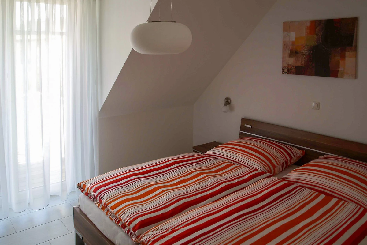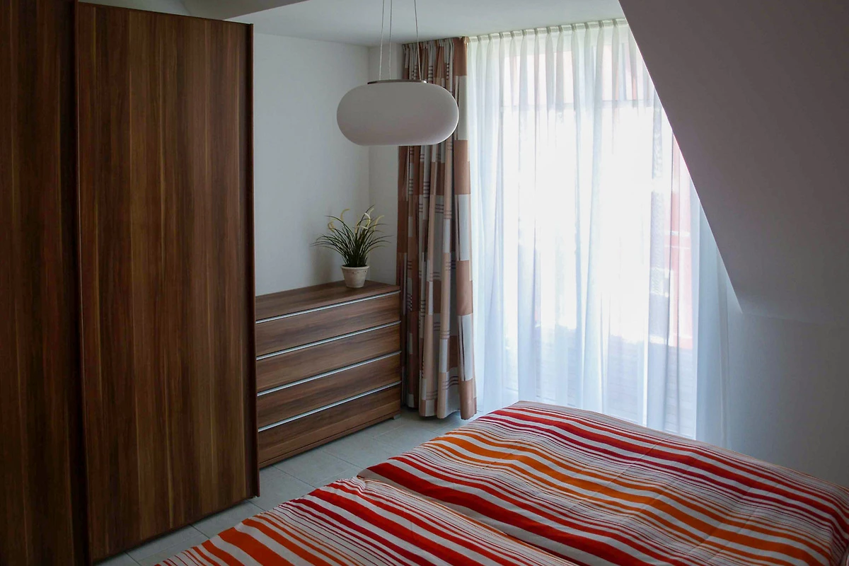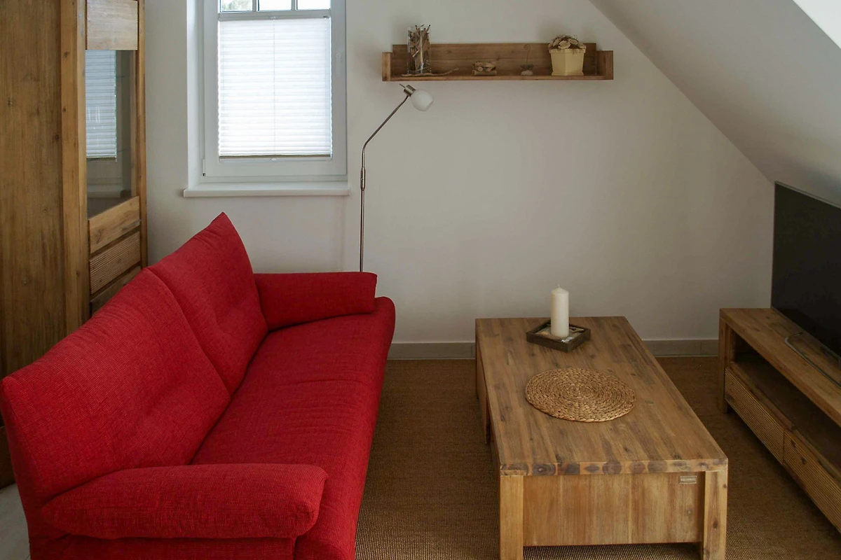Die stilvoll eingerichtete Wohnung bietet zwei Schlafzimmer, ideal für Paare, Familien oder Freunde. Im gemütlichen Wohnzimmer mit Kamin können Sie nach einem Strandtag entspannen und stimmungsvolle Abende verbringen – perfekt zu jeder Jahreszeit.