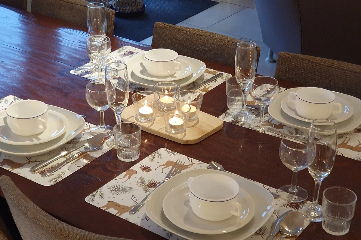 Wasserkocher und Kaffeemaschine sowie ausreichend Geschirr lässt keine Wünsche offen. Waschmaschine, Trockner, Bügeleisen und Staubsauger machen längere Aufenthalte einfacher. Für Familien stehen ein Kinderbett und ein Kinderstuhl zur Verfügung.