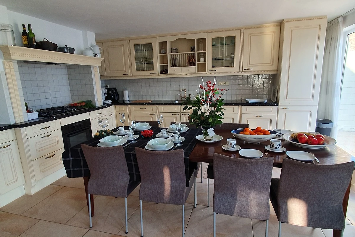 Für Kochliebhaber gibt es eine hervorragend ausgestattete Küche mit allen modernen Annehmlichkeiten. Die Küche ist komplett ausgestattet. KI -- Dezember 2025