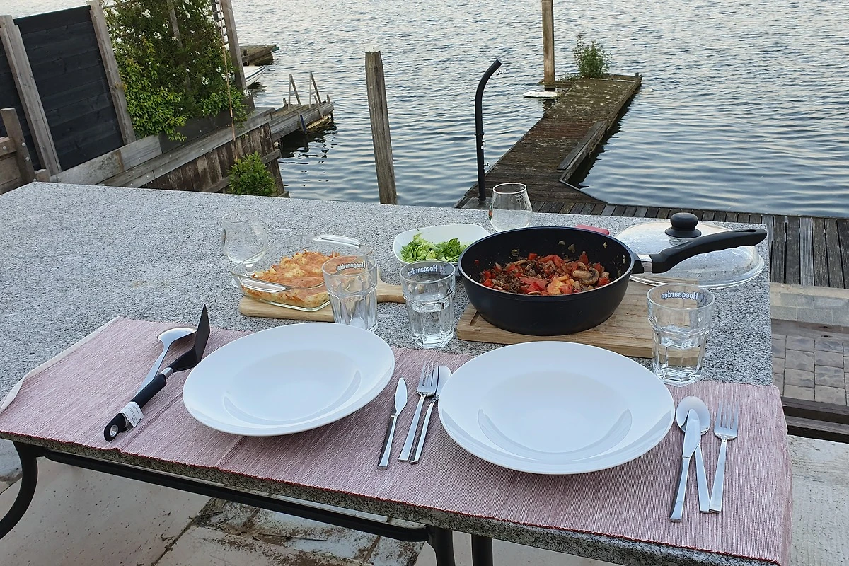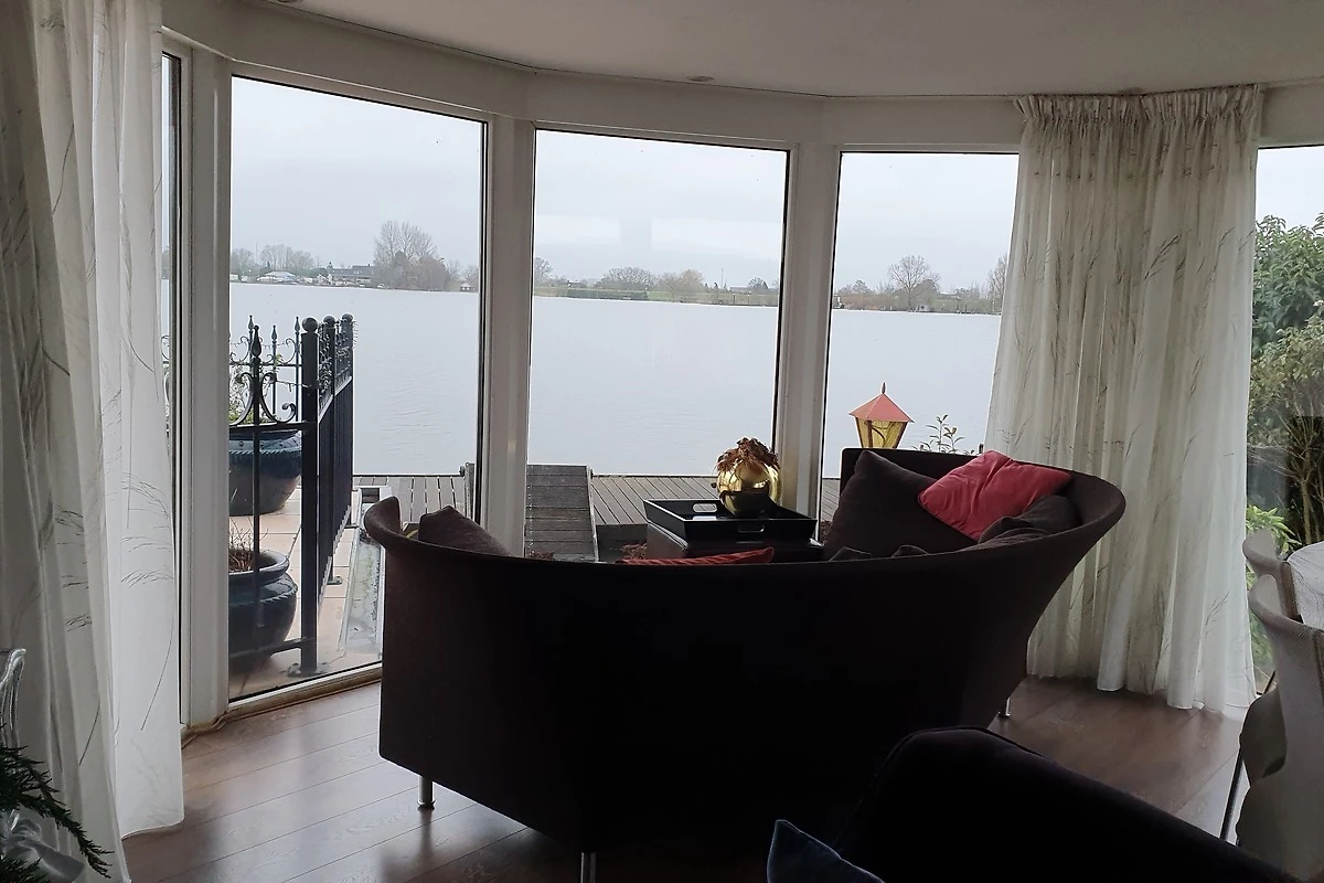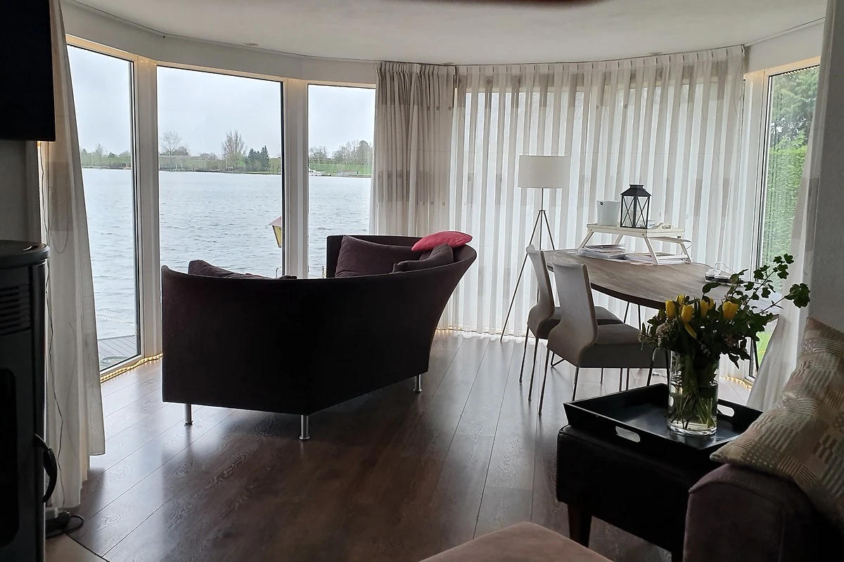 Aus jedem Fenster im Wohnzimmer hat man einen wunderschönen Blick über die Veense Put. Mit all der Bewegung der Wasservögel und einem spektakulären Blick auf die aufgehende Sonne jeden Morgen. Im Winter ist es drinnen auch gemütlich mit Blick auf das Feuer des großen Pelletofens