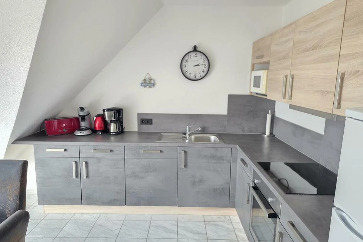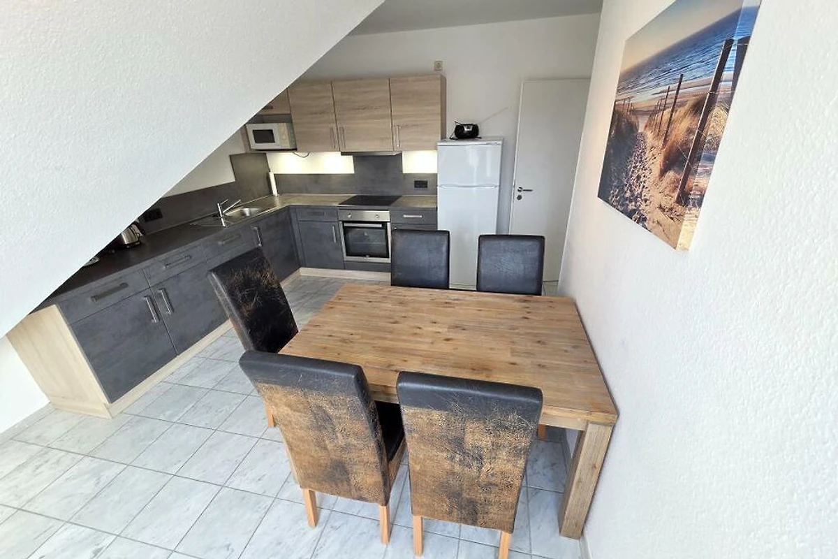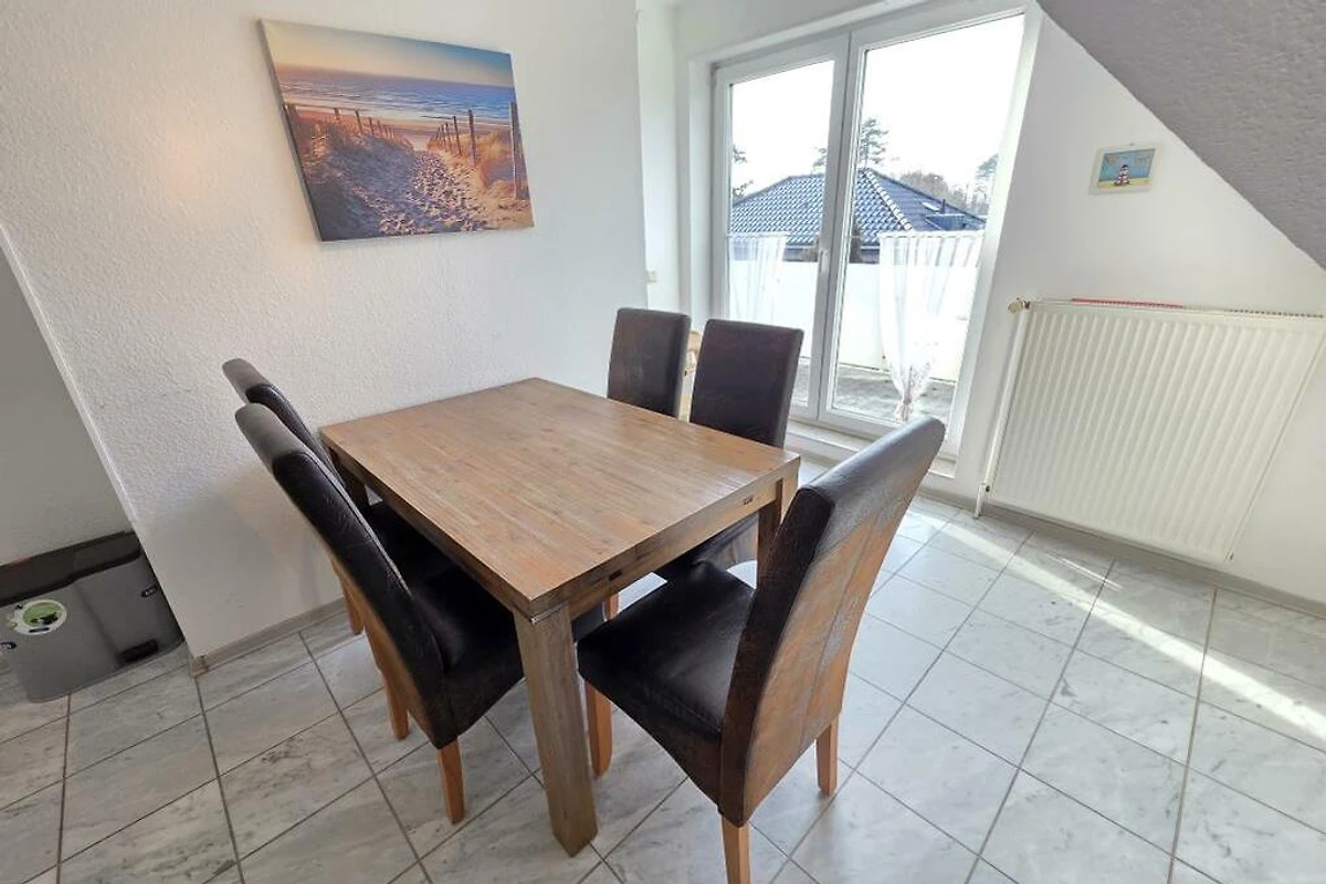Die moderne Küche verfügt über alles, was Sie im Urlaub benötigen: Kühlschrank, Cerankochfeld, Backofen, Mikrowelle, Gefrierfach und Geschirrspüler sowie einen angrenzenden Essbereich. Kostenloses WLAN sorgt dafür, dass Sie auch unterwegs bestens vernetzt bleiben. Die Wohnung ist zudem eine Nichtraucherunterkunft. Haustiere sind bei uns herzlich willkommen. Der nahe Wald und die schöne Duhner Heide lädt zu einem entspannten Spaziergang ein.