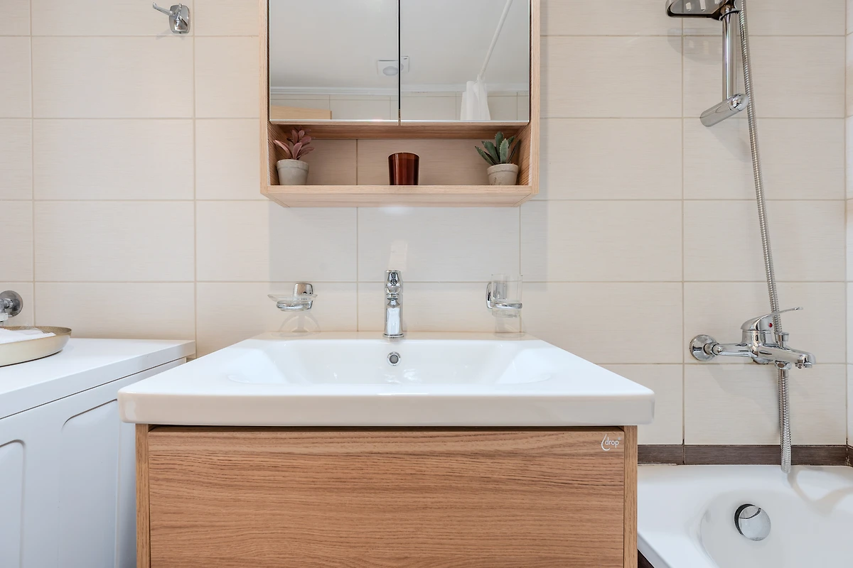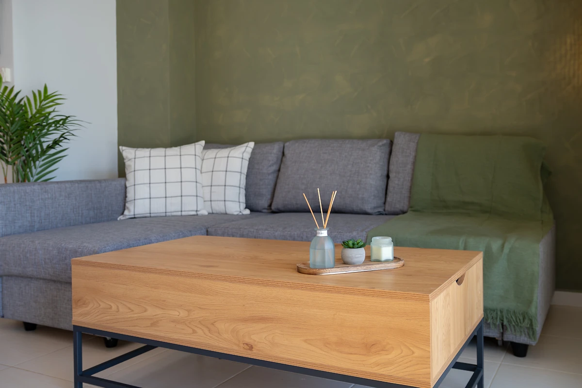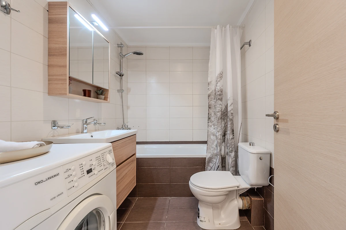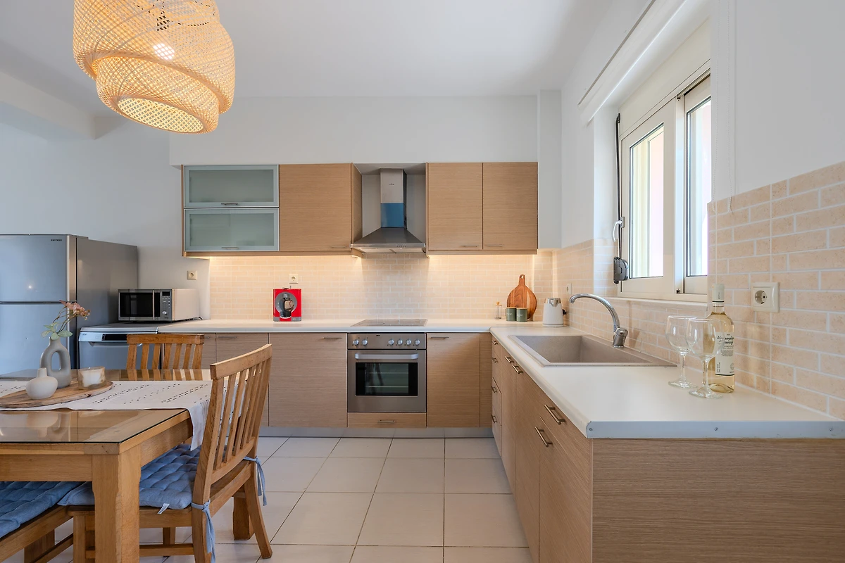 Im Inneren sorgt ein stilvoller Kamin an kühleren Abenden für behagliche Atmosphäre. Die voll ausgestattete Küche mit Küchenzeile, Geschirrspüler, Mikrowelle, Wasserkocher und Kaffeemaschine lädt zum gemeinsamen Kochen ein. Bettwäsche ist inklusive, eine Waschmaschine steht bereit, ebenso wie ein Haartrockner. Für Familien mit Kleinkindern gibt es ein Babybett.