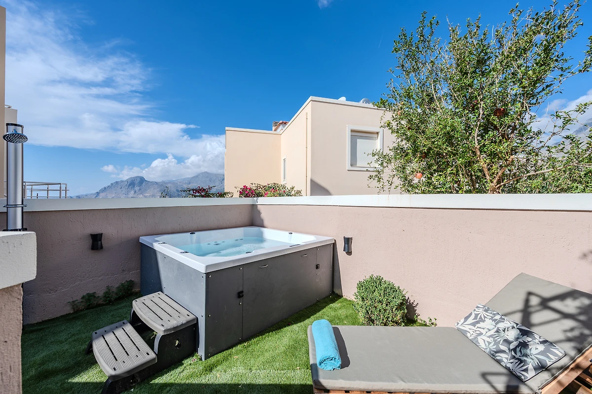 Im Ferienhaus Erholungsurlaub Mirthios Plakias auf Kreta genießen bis zu sechs Gäste auf 160 m² Wohnfläche ein unvergessliches Urlaubserlebnis. Das Haus bietet zwei komfortable Schlafzimmer und zwei moderne Badezimmer, ideal für Familien oder Freunde. Von der großzügigen Terrasse und dem Balkon eröffnet sich ein herrlicher Blick auf das Meer und die umliegende Berglandschaft – perfekt für entspannte Stunden im Freien. Im gepflegten Garten oder am privaten Swimmingpool lässt sich die Sonne genießen, während der Whirlpool pure Entspannung verspricht.