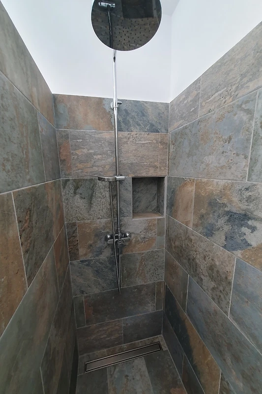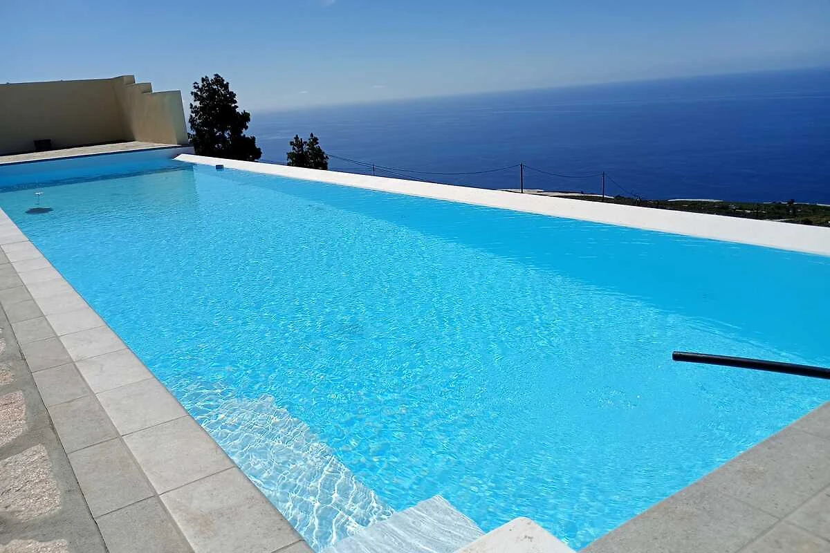 Unser traumhafter Infinity-Pool erstreckt sich über 12 Meter und ist für richtiges Schwimmen geeignet, aber natürlich auch, um sich nur abzukühlen. Die Treppe hinunter ist auf der zweiten Stufe extra als Sitzbank konzipiert worden, um einfach dort zu sitzen, aufs Meer zu blicken und die Seele baumeln zu lassen. Beheizt wird der Pool durch eine Wärmepumpe (Energie aus der Solaranlage).