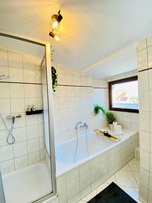Entspannen Sie sich im Badezimmer mit einer wohltuhenden Dusche oder einem Wellnessbad, um Ihre Seele baumeln zu lassen.