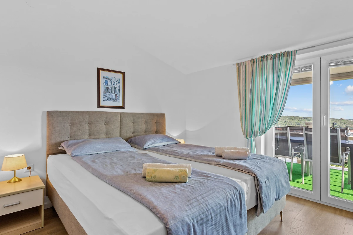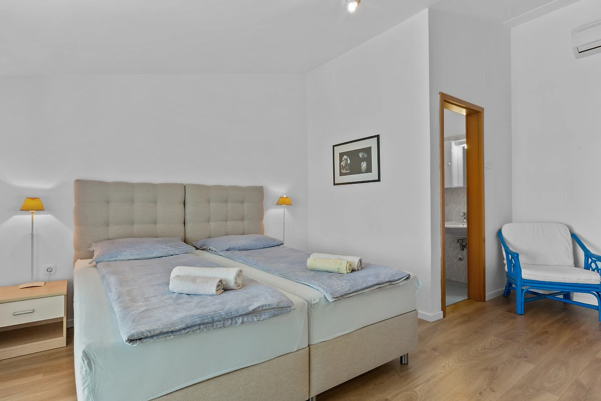 Entspannen Sie sich in den 3 zeitgemässen Badezimmern, die jeweils mit einer Dusche ausgestattet sind. Die Ferienwohnung bietet Klimaanlage, um Komfort während der warmen kroatischen Sommer zu gewährleisten. Im Freien können Gäste einen schönen Garten, ein eingezäuntes Grundstück, einen Grillbereich und eine geräumige Terrasse geniessen, die perfekt zum Speisen im Freien oder zum Entspannen ist.