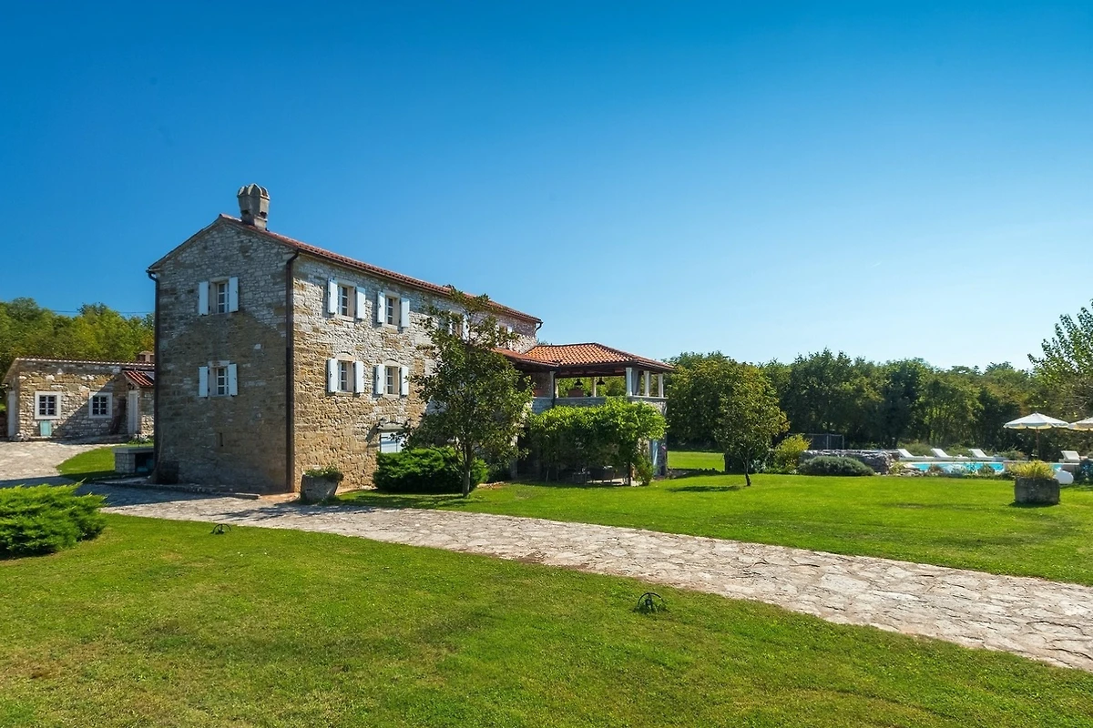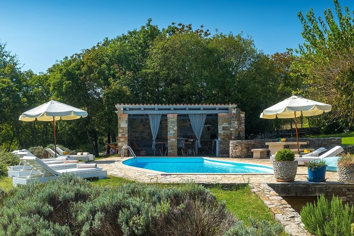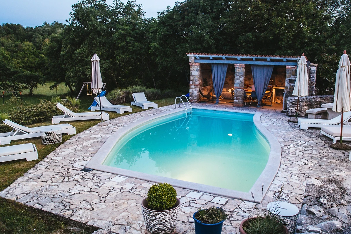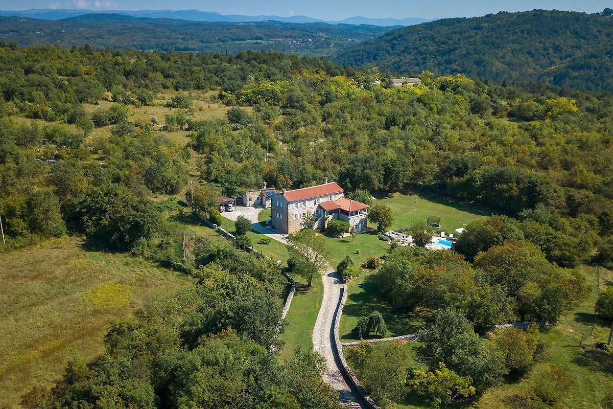 Entdecken Sie Stancia Vigini, eine atemberaubende Villa für Familien und Paare, die in der malerischen Umgebung von Grožnjan eingebettet ist und einen perfekten Landfluchtort mit atemberaubenden Bergblicken und Waldlandschaften bietet.