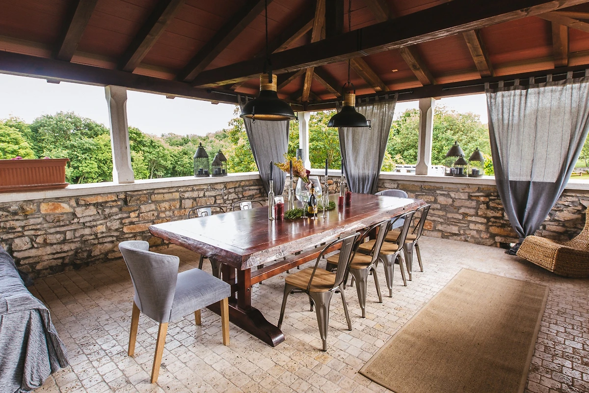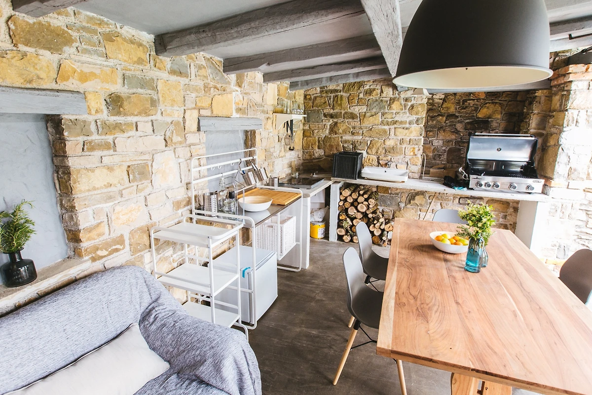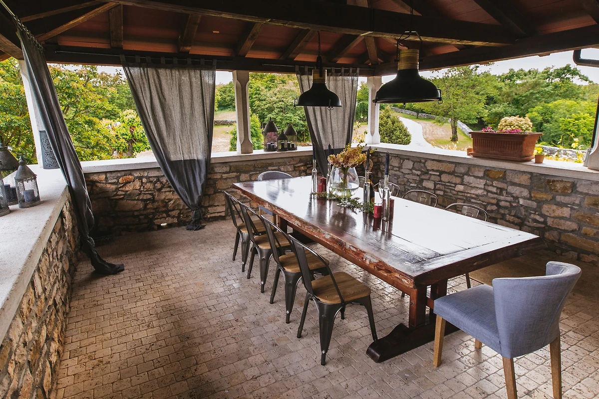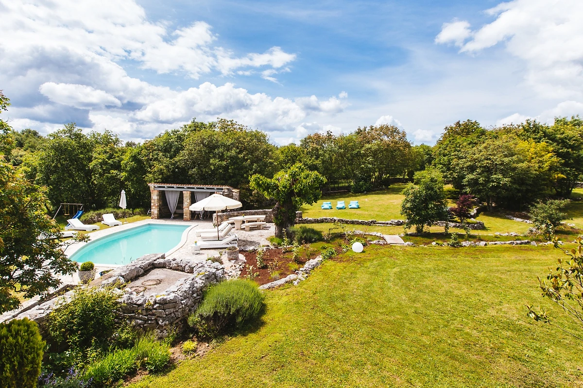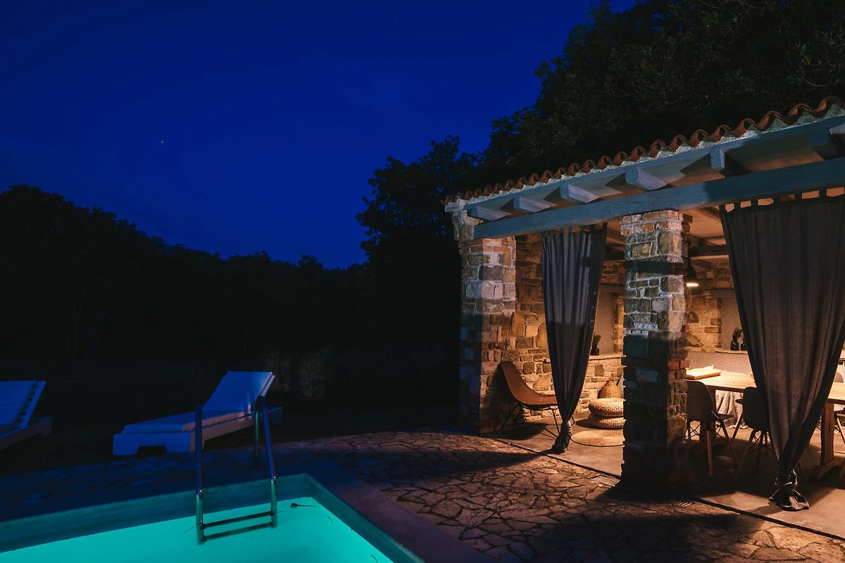 Entdecken Sie Stancia Vigini, eine atemberaubende Villa für Familien und Paare, die in der malerischen Umgebung von Grožnjan eingebettet ist und einen perfekten Landfluchtort mit atemberaubenden Bergblicken und Waldlandschaften bietet.