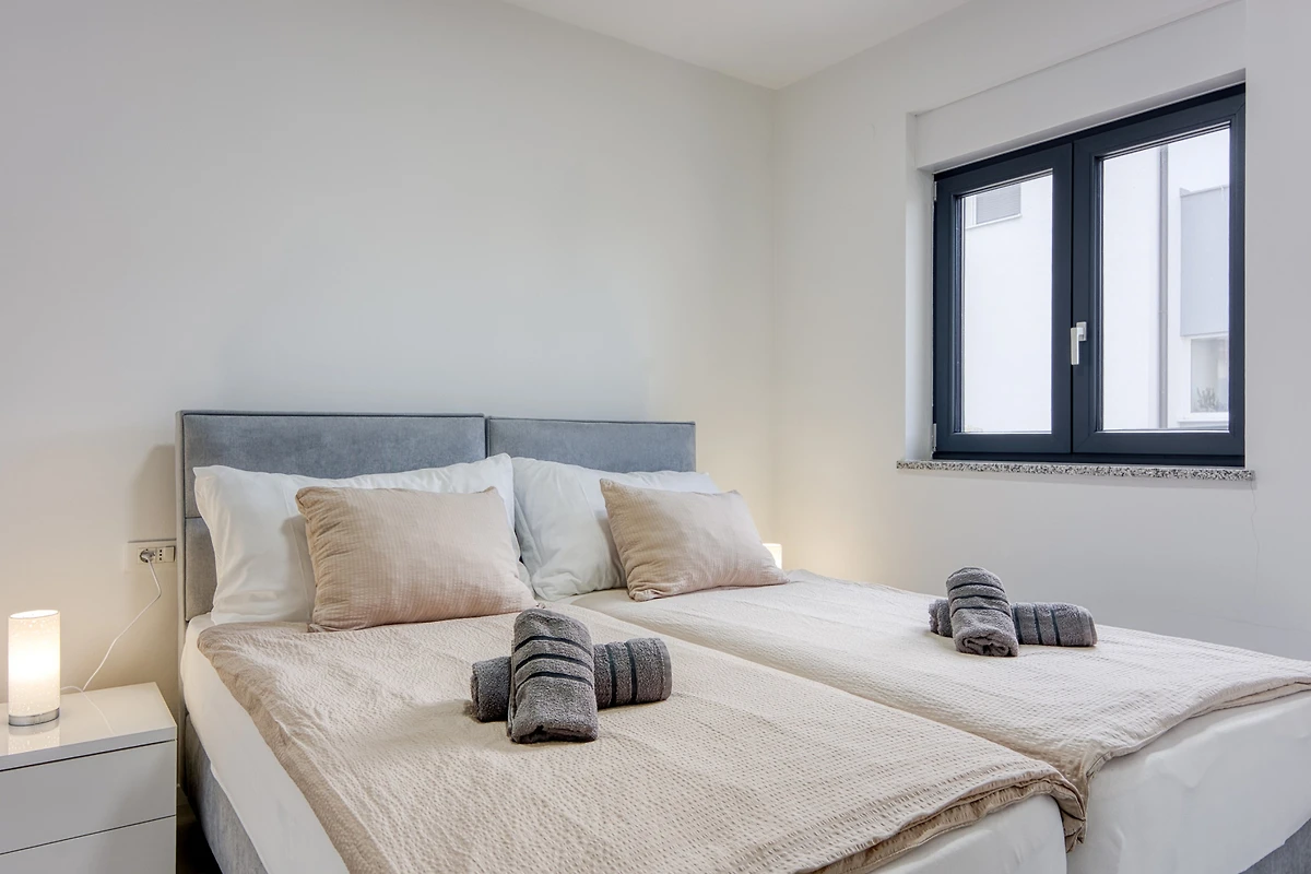 Der Standort bietet eine hervorragende Nähe zu lokalen Einrichtungen: nur 600 m von einem Supermarkt entfernt, 1,5 km vom Stadtzentrum Porec und 2,2 km von einem Sandstrand. Der Flughafen Pula liegt etwa 52,5 km entfernt, was die Reise bequem macht.