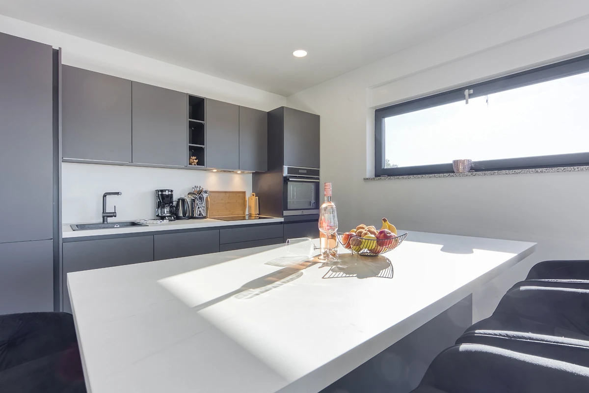 Die voll ausgestattete amerikanische Küche ist ein Highlight und verfügt über moderne Annehmlichkeiten, einschliesslich einer Glaskeramik-Kochplatte, Kühlschrank, Gefrierschrank, Backofen, Geschirrspüler, Kaffeemaschine und kompletter Küchenausstattung. Eine Waschmaschine bietet praktische Bequemlichkeit für längere Aufenthalte. Die Immobilie verfügt zudem über einen Fernseher und kostenloses WLAN, um Sie verbunden zu halten.