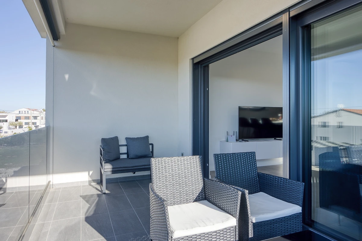 Praktische Annehmlichkeiten umfassen zwei private überdachte Parkplätze im selben Gebäude. Die Lage bietet bemerkenswerte Nähe zu lokalen Attraktionen: nur 1,5 km vom Stadtzentrum von Porec entfernt, 600 m von einem Supermarkt und 2,2 km von einem Sandstrand. Der Flughafen Pula befindet sich in etwa 52,5 km Entfernung.