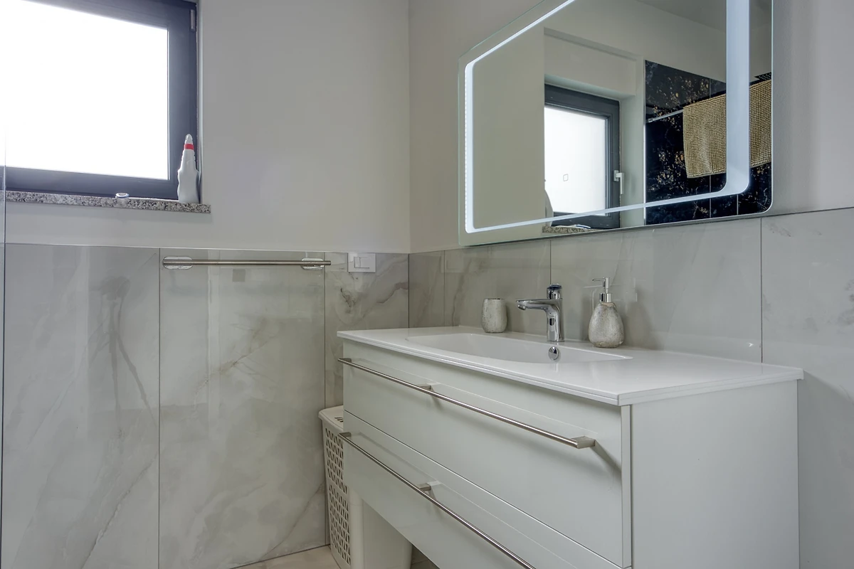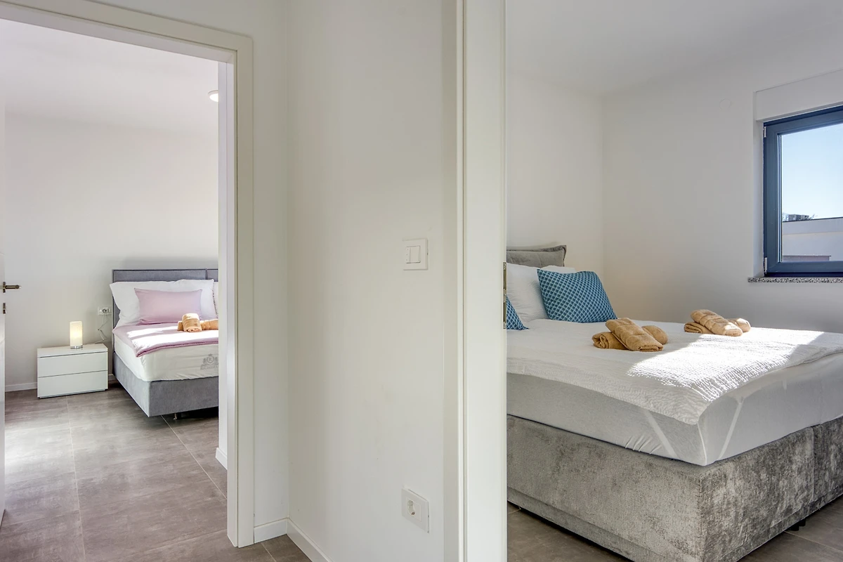 Entdecken Sie eine ruhige Unterkunft in der wunderschönen ländlichen Landschaft von Porec mit dieser modernen 75 m² Wohnung Adria 4. Perfekt für Familien und Paare, die einen ruhigen Rückzugsort suchen, bietet diese charmante Zweizimmerwohnung Komfort und Bequemlichkeit.