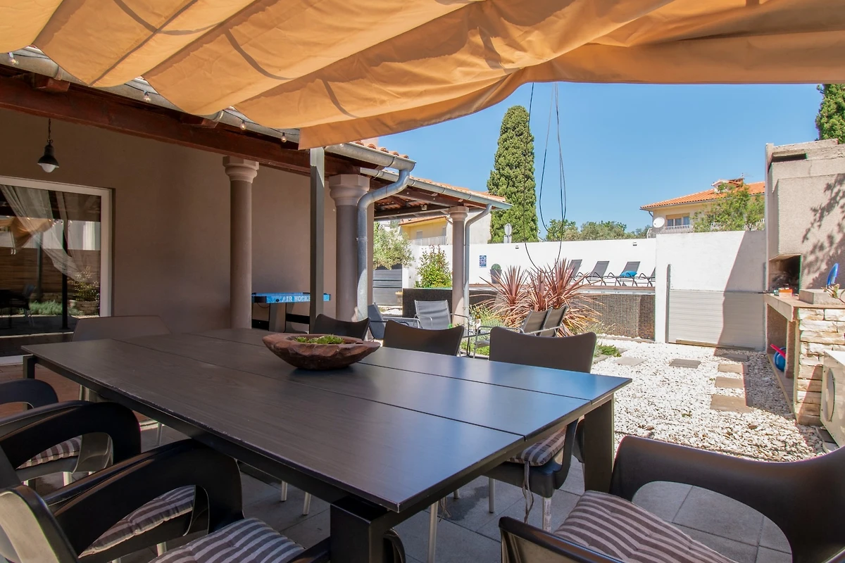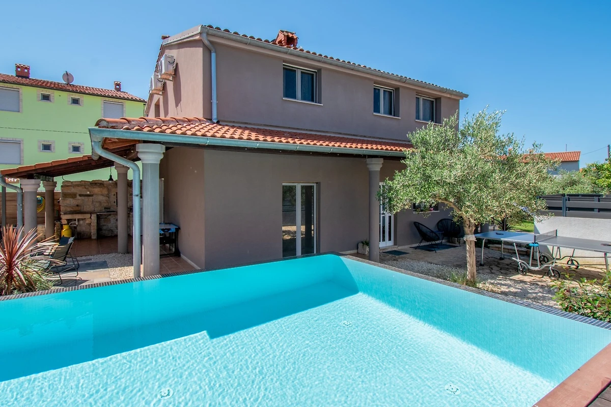 Entdecken Sie eine atemberaubende familienfreundliche Villa in der charmanten Stadt Medulin, die einen perfekten Rückzugsort für bis zu 10 Gäste bietet. Diese geräumige 163 m² grosse Immobilie liegt auf einem grosszügigen 600 m² Grundstück und bietet reichlich Platz und Privatsphäre für Familien und Paare, die einen unvergesslichen kroatischen Urlaub suchen.