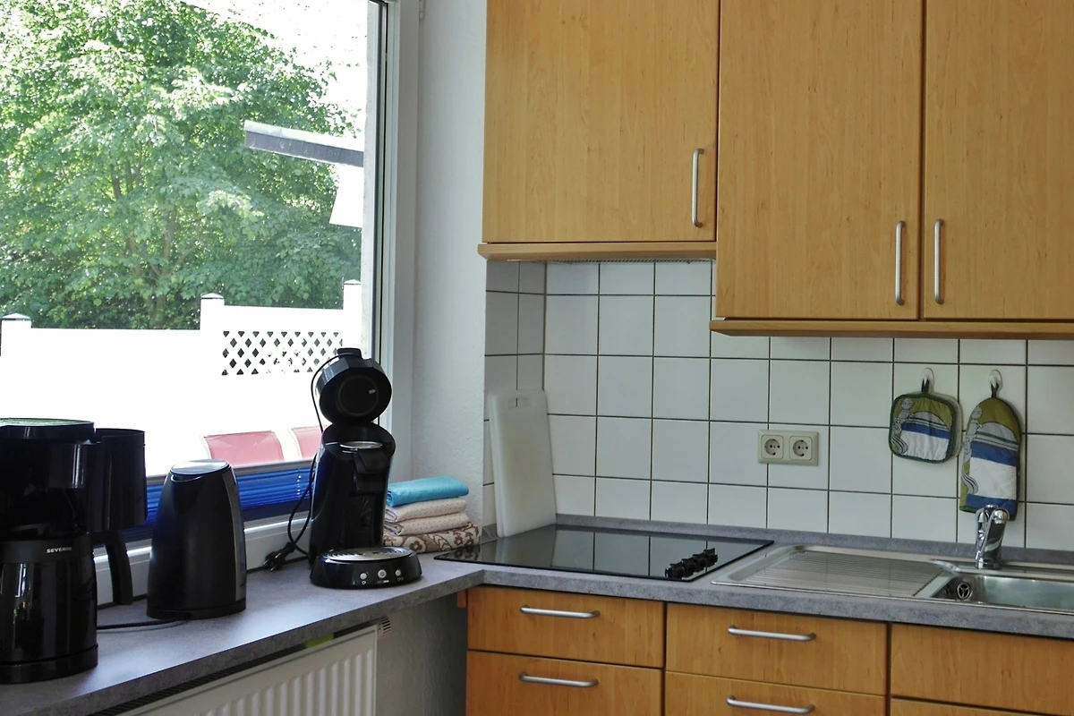 Die Fewo ist barrierearm, nicht jedoch barrierefrei nach DIN. Den Filter barrierefrei gibt es in Buchungsportalen leider nicht, weshalb wir das Ferienobjekt dort als barrierefrei angeben, denn es ist für viele Gehbehinderte dennoch gut nutzbar, insbesondere wegen der superzentralen Lage im Ort. Der ca. 30m kurze Weg vom P zur Wohnung ist gepflastert und ebenerdig bzw. die Schräge ist ungefähr DIN-gerecht. Die Türen zum Bad und in die Küche sind nur 70cm breit. Die Dusche 90x90cm hat eine Schwelle von 25 cm. Die Balkontür besitzt die übliche Schwelle.