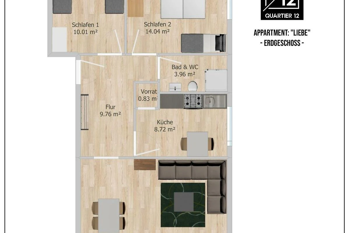 Sie können im Quartier12 auch zwei Fewo zusammen buchen für befreundete Familien oder Kleingruppen - wir bitten jedoch um Verständnis, dass wir nicht über 2 Fewo hinausgehen, da sich das Quartier12 nicht als Clubherberge oder Gruppenunterkunft versteht. Wir legen wert kultivierte Gäste und erwarten Rücksichtnahme auf andere Gäste im Haus. Feiern und exzessive Geselliglkeit sind im Haus und auf den Balkonen nicht erwünscht und werden nicht geduldet.