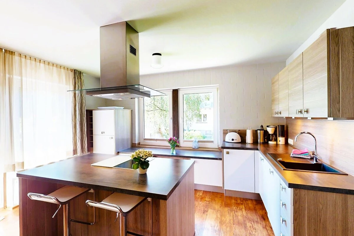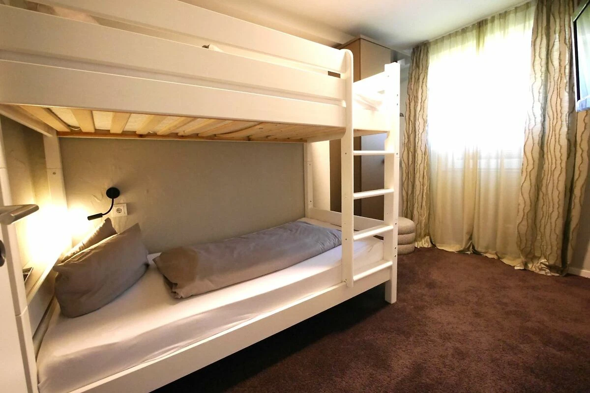 Die Ferienwohnung "Mühlenkopf" für 4-6 Personen begeistert mit einem gemütlichen und grosszügigem Designer-Wohnzimmer, einem Südostbalkon und einer modernen offenen Küche mit Kochinsel. Es verfügt über drei Schlafzimmern mit TV, davon zwei mit Doppelbetten und einem mit Stockbett, sowie zwei Badezimmern, eines mit Dusche und Badewanne. Die umfangreiche Ausstattung lässt kaum Wünsche offen. Für Kinder gibt es im Haus ein Spielzimmer.