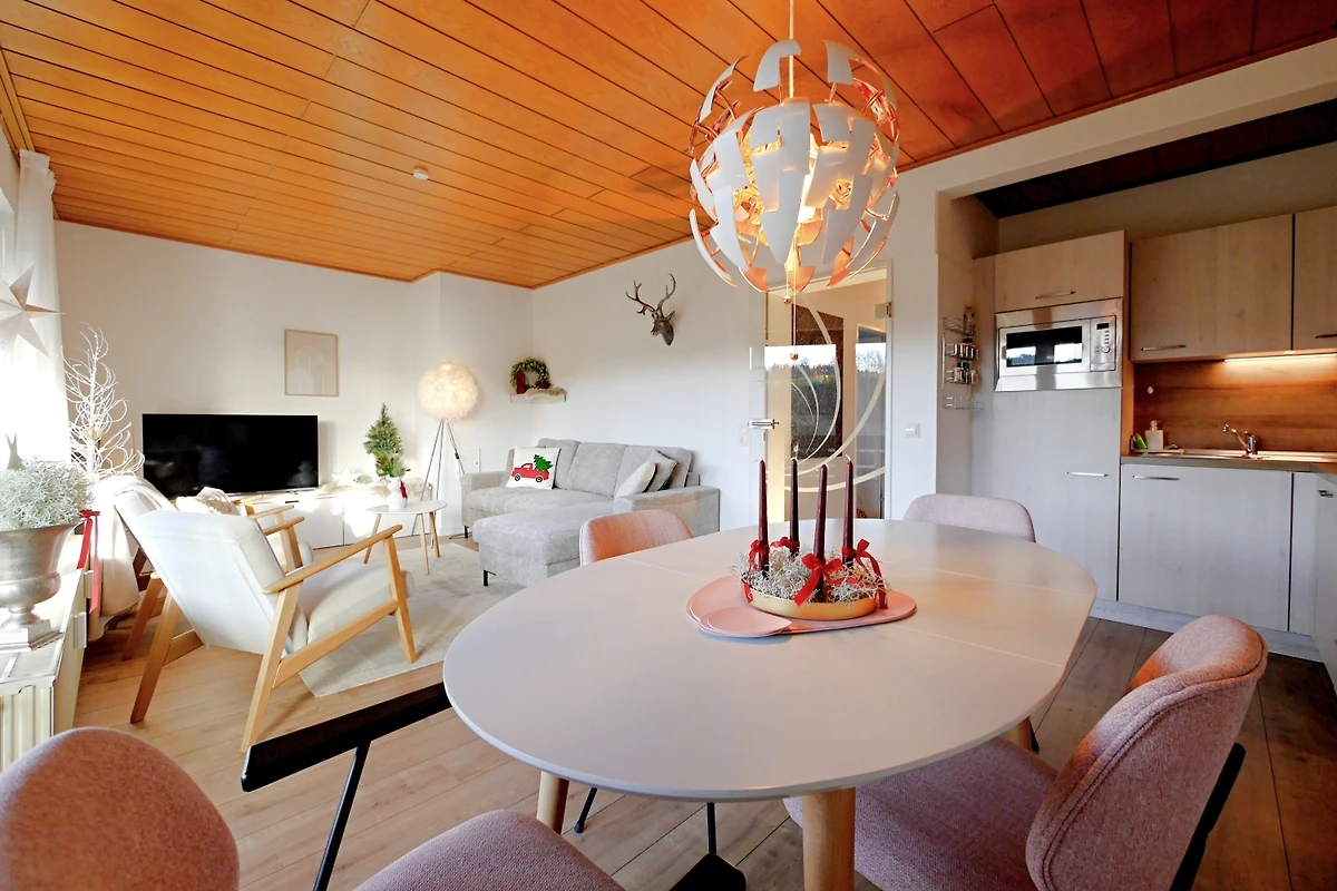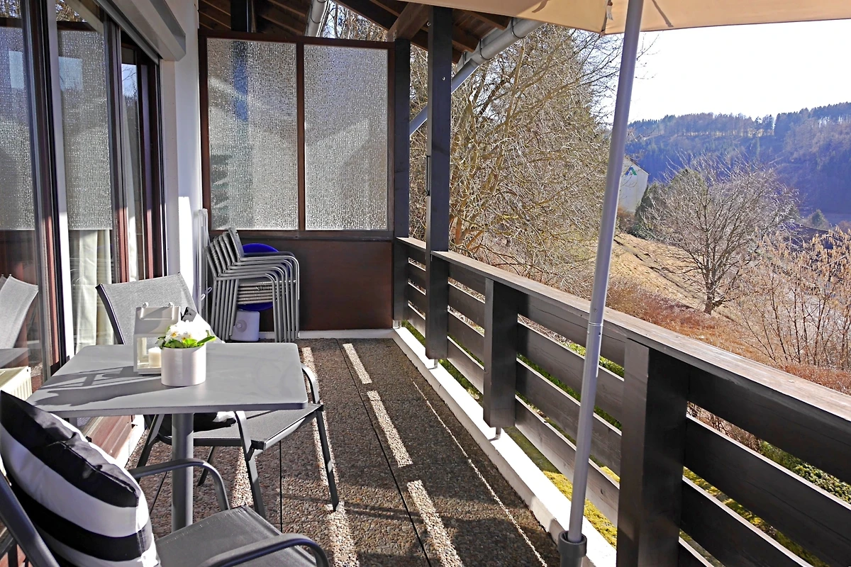 Dieses Appartement mit WLAN besticht durch sein modernes Design mit guter Ausstattung, überdachtem Balkon und wunderschönem Upländer Bergpanorama. In abseitiger Hanglage befindlich, geht es von der Strasse zur Fewo ein Stockwerk bergab per Aussentreppe.