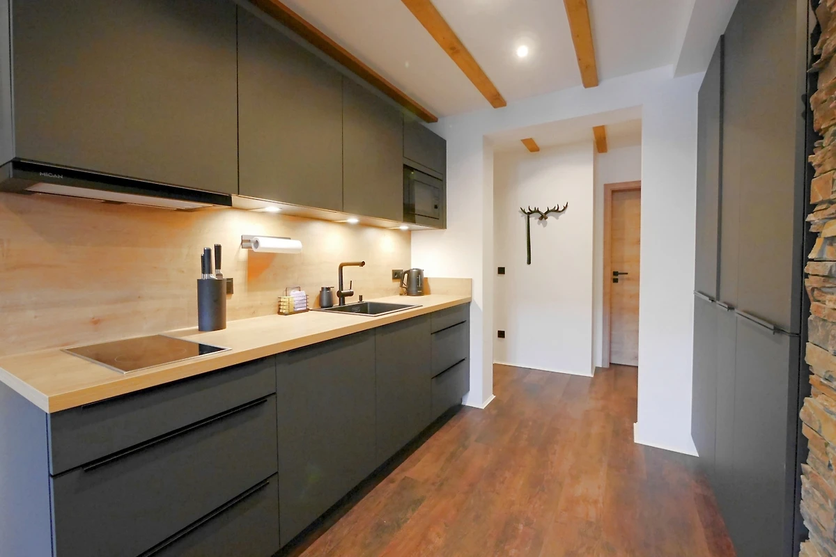 - offene integrierte Küche mit guter Ausstattung: 2-Platten-Ceranfeld, Geschirrspüler, PAD-Maschine,