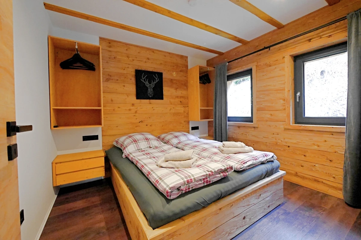 - ein Schlafzimmer mit Doppelbett (180x200), TV und Kleiderschrank