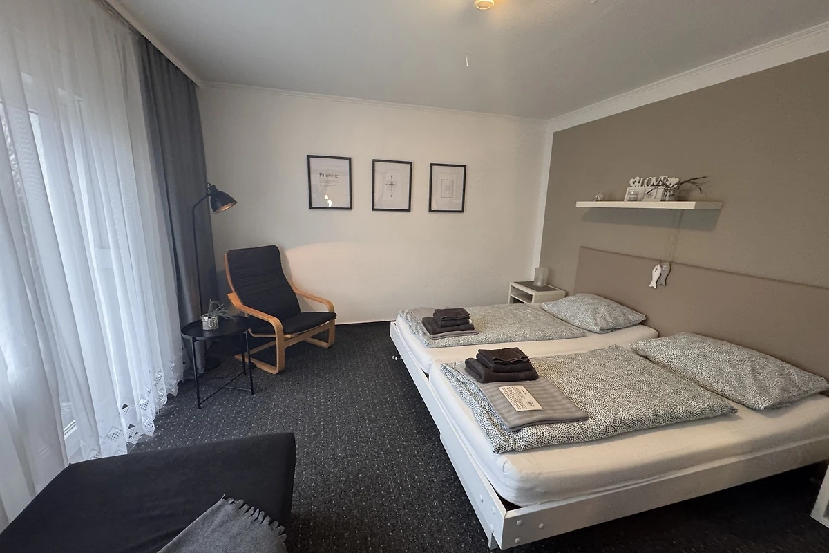 Die sonnige Terrasse mit Blick in den gepflegten Garten lädt zum Verweilen ein – perfekt für ein Frühstück im Freien oder entspannte Stunden im Grünen. Ihr Auto parken Sie bequem auf dem eigenen Stellplatz. Die Ferienwohnung ist ausschließlich für Nichtraucher und sorgt mit einer allergikerfreundlichen Umgebung für Wohlbefinden. Auch Langzeitaufenthalte sind möglich, und Monteure sind herzlich willkommen.