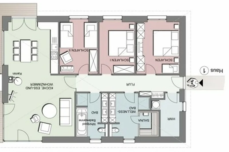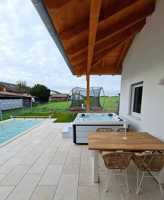Ein besonderes Highlight des Hauses ist der 15 m² große, beheizte Salzwasserpool, der von Mitte Mai bis September nutzbar ist – perfekt für Familien mit Kindern. Zusätzlich stehen Ihnen ein exklusiver Whirlpool mit hochwertigen Edelstahldüsen zur Verfügung.