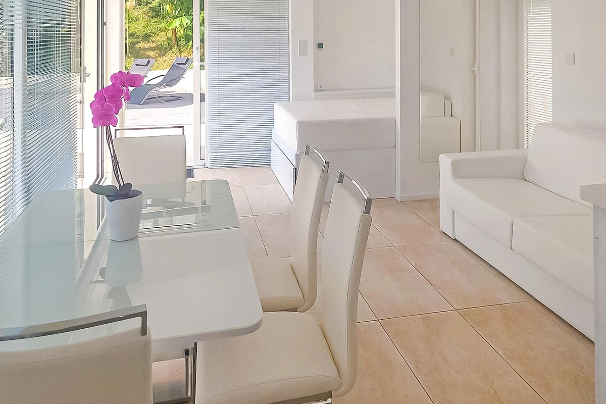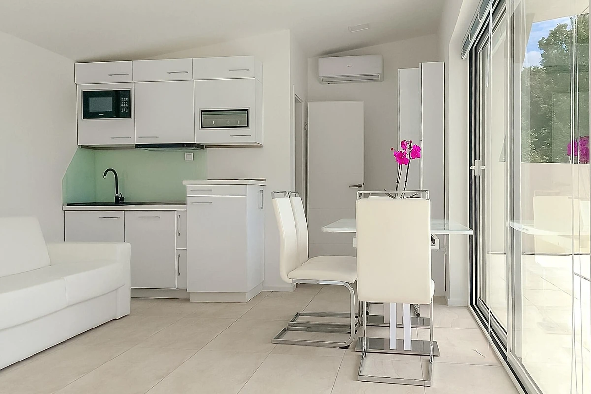 Das Herzstück der Villa ist ihre gut gestaltete amerikanische Küche, die vollständig ausgestattet ist mit modernen Annehmlichkeiten, einschliesslich einer Glaskeramik-Kochplatte, Kühlschrank, Backofen, Mikrowelle, Geschirrspüler, Kaffeemaschine, Toaster und umfangreichem Küchengeschirr. Geniessen Sie es, mit Leichtigkeit und Bequemlichkeit köstliche Mahlzeiten zuzubereiten.