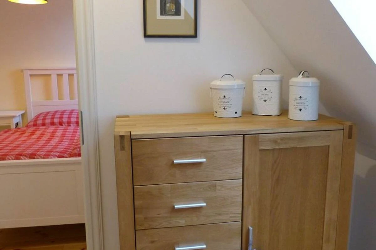 Das im Jahr 2019 liebevoll restaurierte Ferienhaus besticht durch seinen natürlichen Stil: Kork- und Holzdielenböden, Vollholz-Möbel und eine einladende, gemütliche Atmosphäre. Machen Sie es sich mit einer Tasse Kaffee am Kaminofen gemütlich oder geniessen Sie die frische Luft draussen, etwa auf der Kaimauer des nahegelegenen kleinen Hafens. Schlendern Sie durch das idyllische Dorf und entdecken Sie die bunten Fischerhäuschen, die Kamminke so besonders machen. Wenn Sie das Wasser lieben, erreichen Sie den Strand in wenigen Minuten, wo immer ein schönes Plätzchen zum Baden auf Sie wartet.